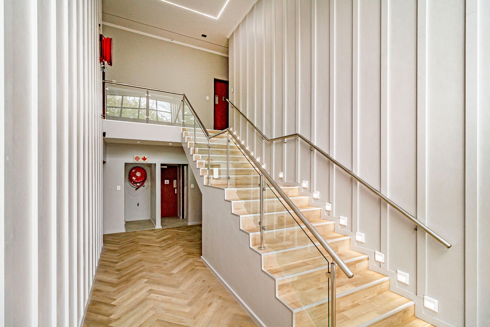 The photographs display the landlord's office space on the 1st floor. The landlord occupies the whole of the first floor. The ground floor photographs display the two unfinished units.