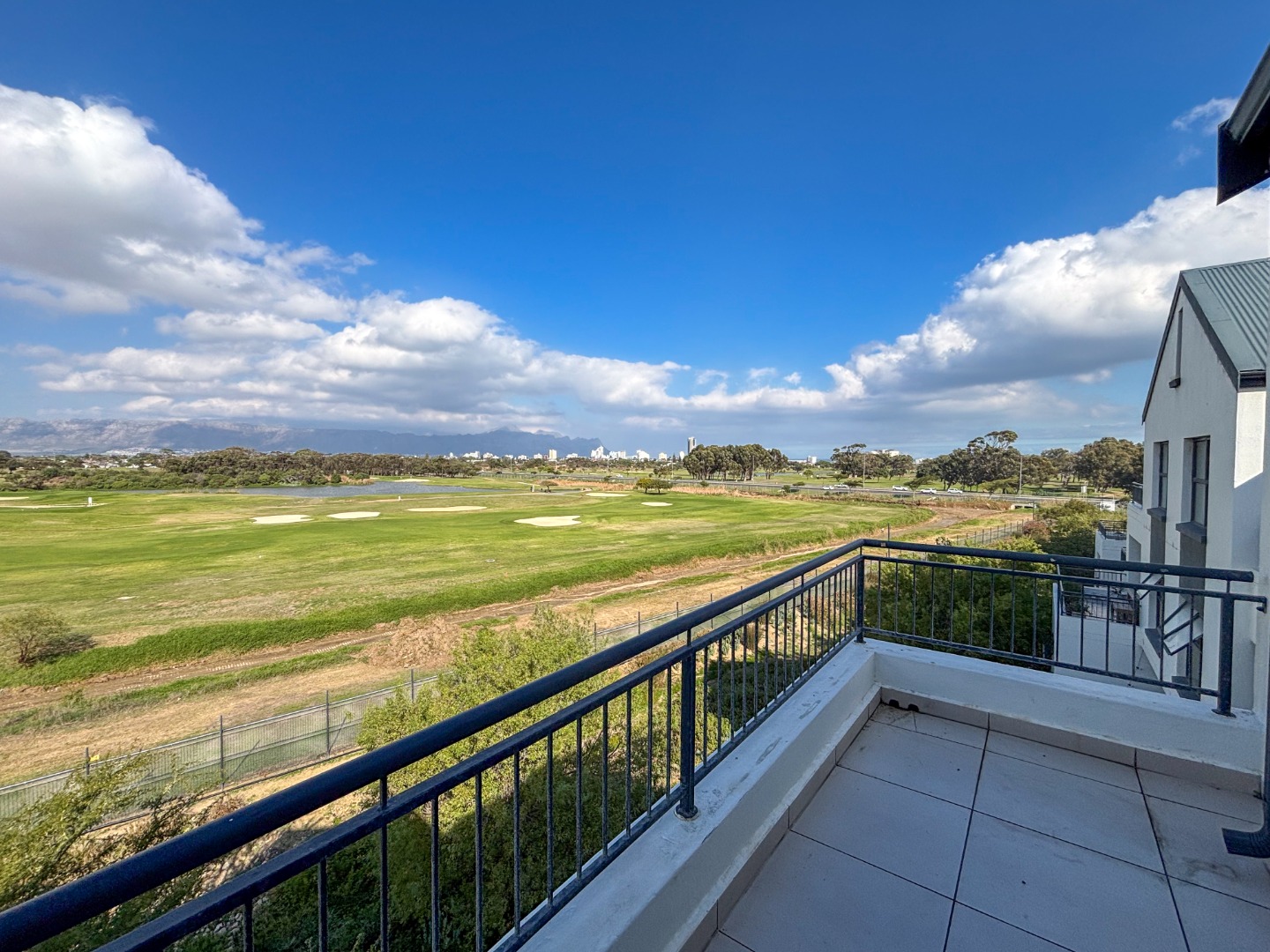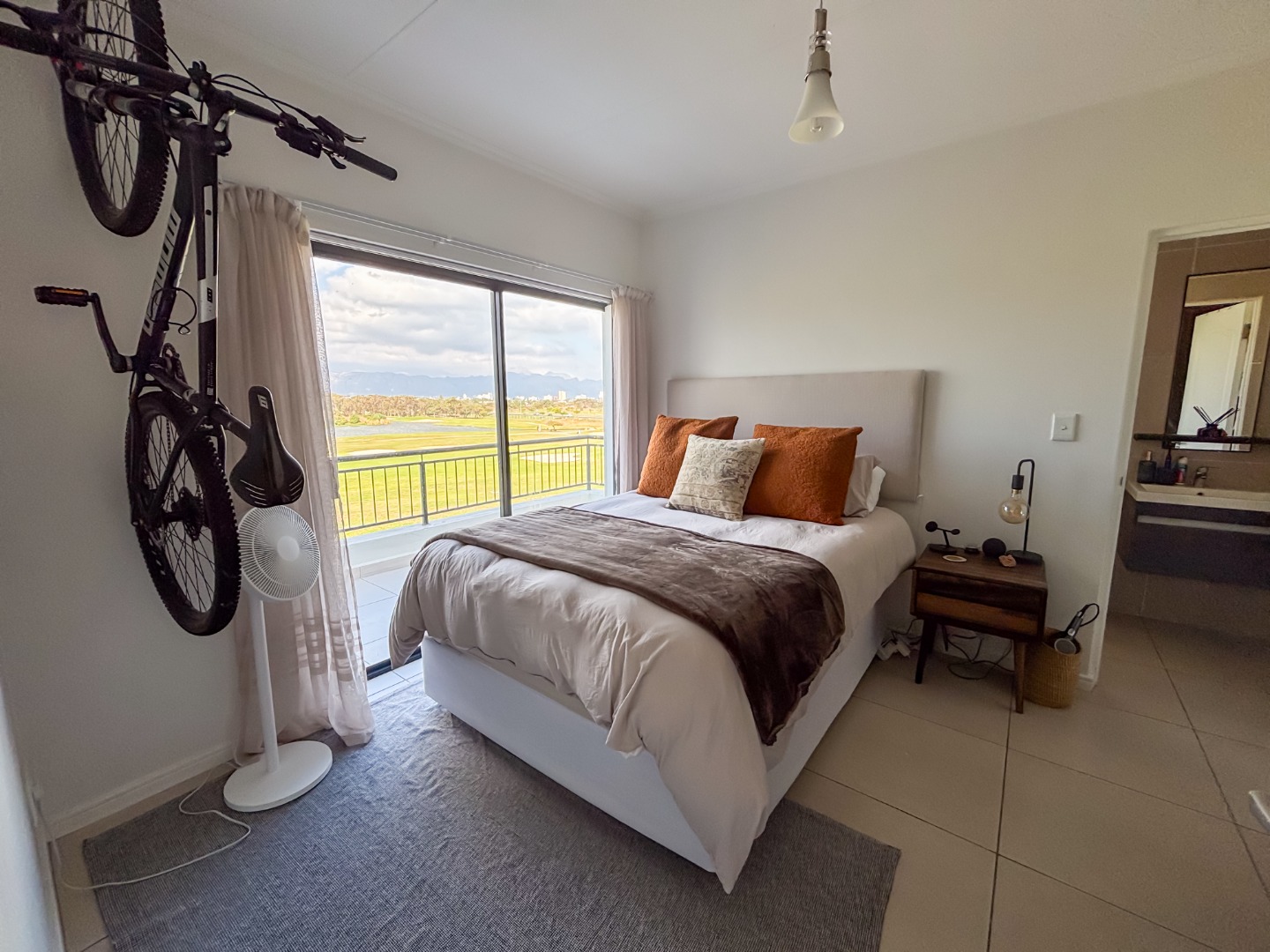 This spacious, top-floor one-bedroom apartment overlooks the golf course and offers modern, stylish living. The kitchen is fitted with Caesarstone countertops and includes quality appliances such as a gas stove, fridge, washing machine, and tumble dryer. It flows seamlessly into the open-plan lounge and dining area, which leads onto a large east-facing balcony.