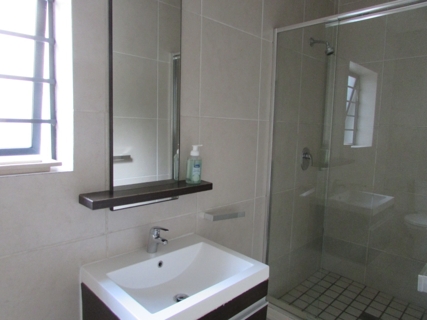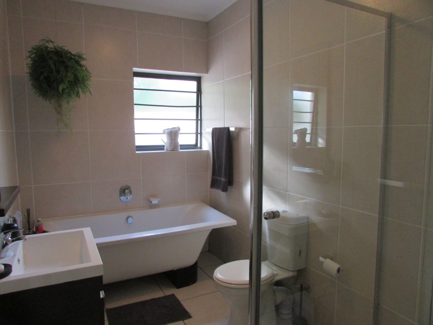 Three double sized bedrooms with built in cupboards whereof the guest bathroom offers a bath, shower, basin and toilet. The on suite receives morning sun with a shower, basin and toilet. The unit is tiled throughout as well as tiles in the bathrooms.