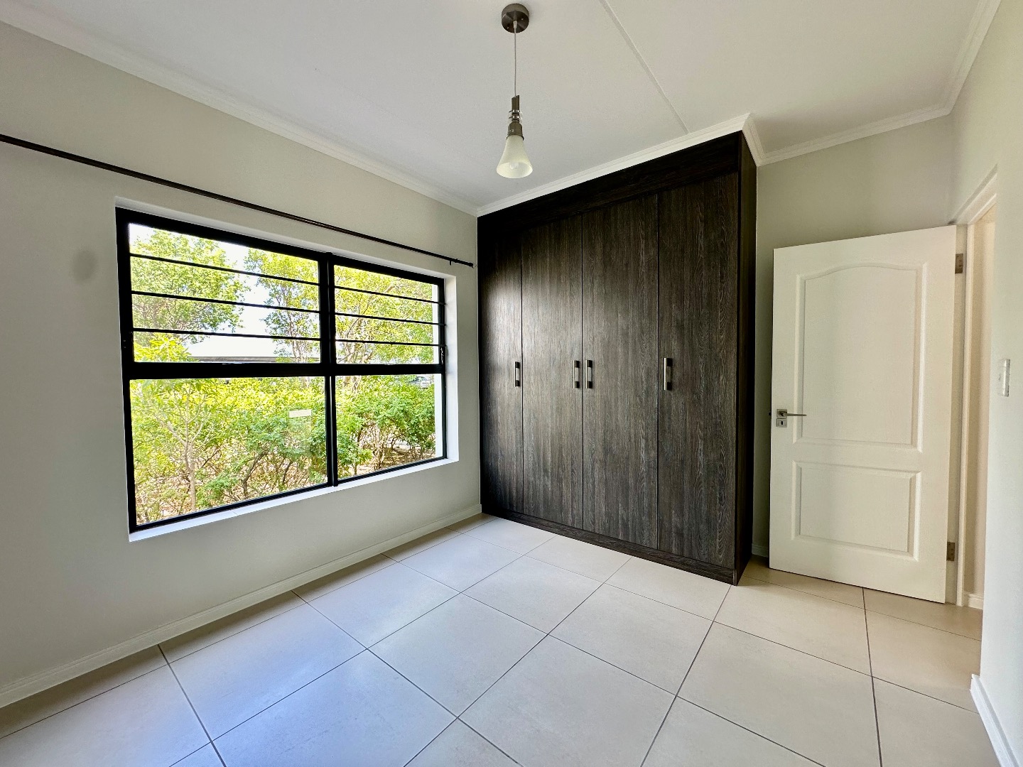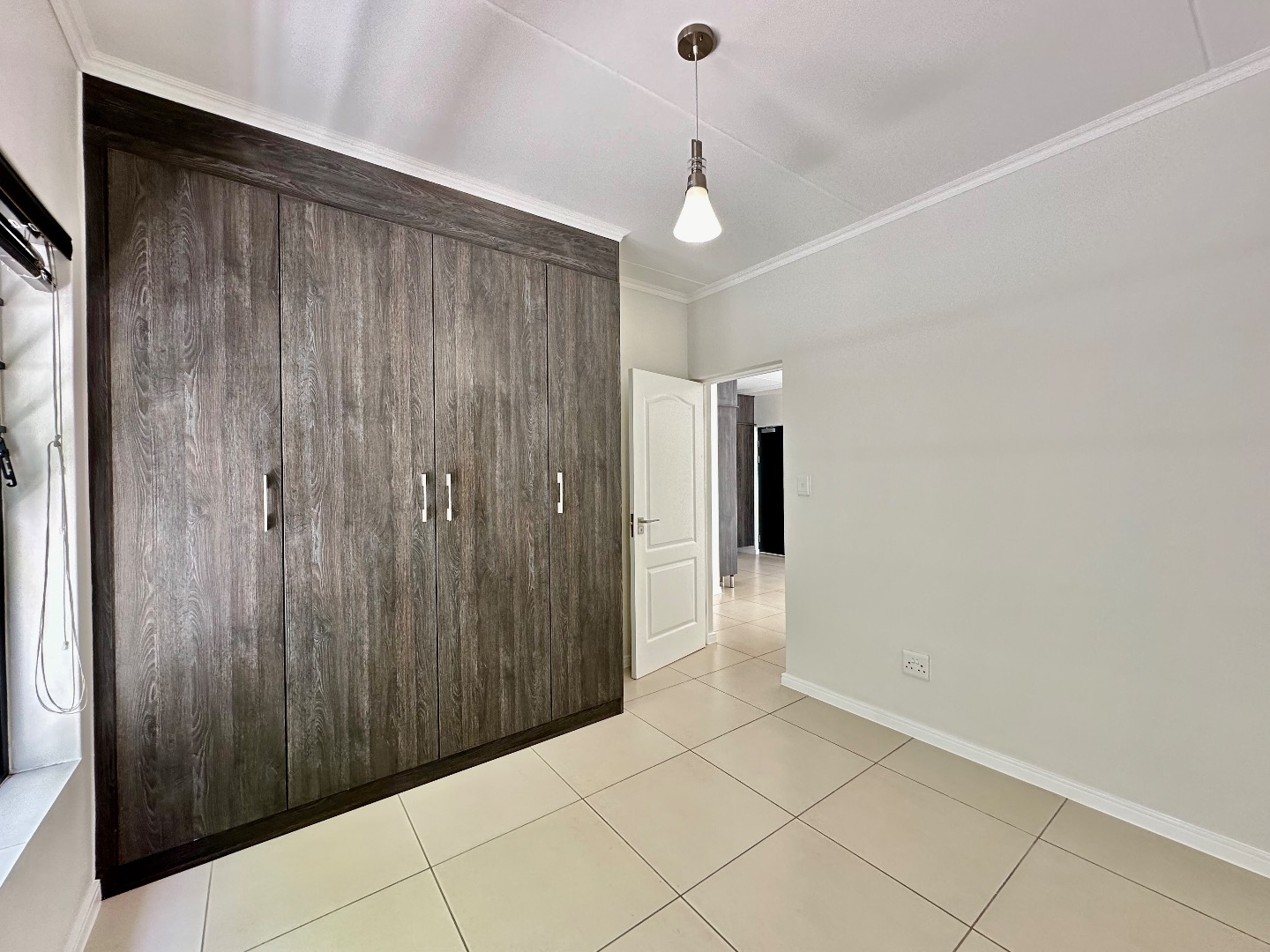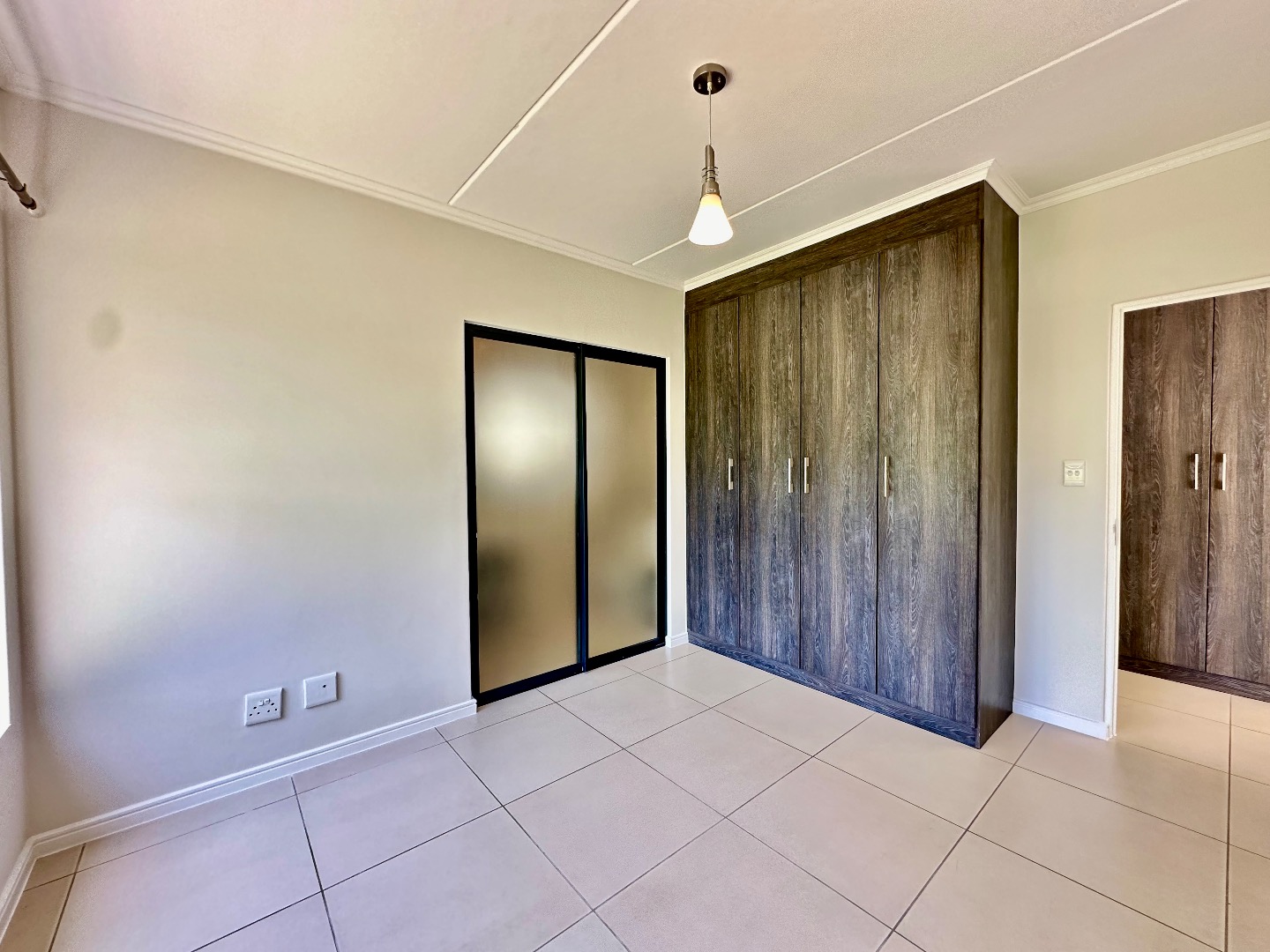 The heart of this home is the open plan kitchen featuring elegant caesarstone countertops, ample cupboard space, and oven with a gas hob. The kitchen flows seamlessly into the open plan dining/living room, creating a harmonious living environment.