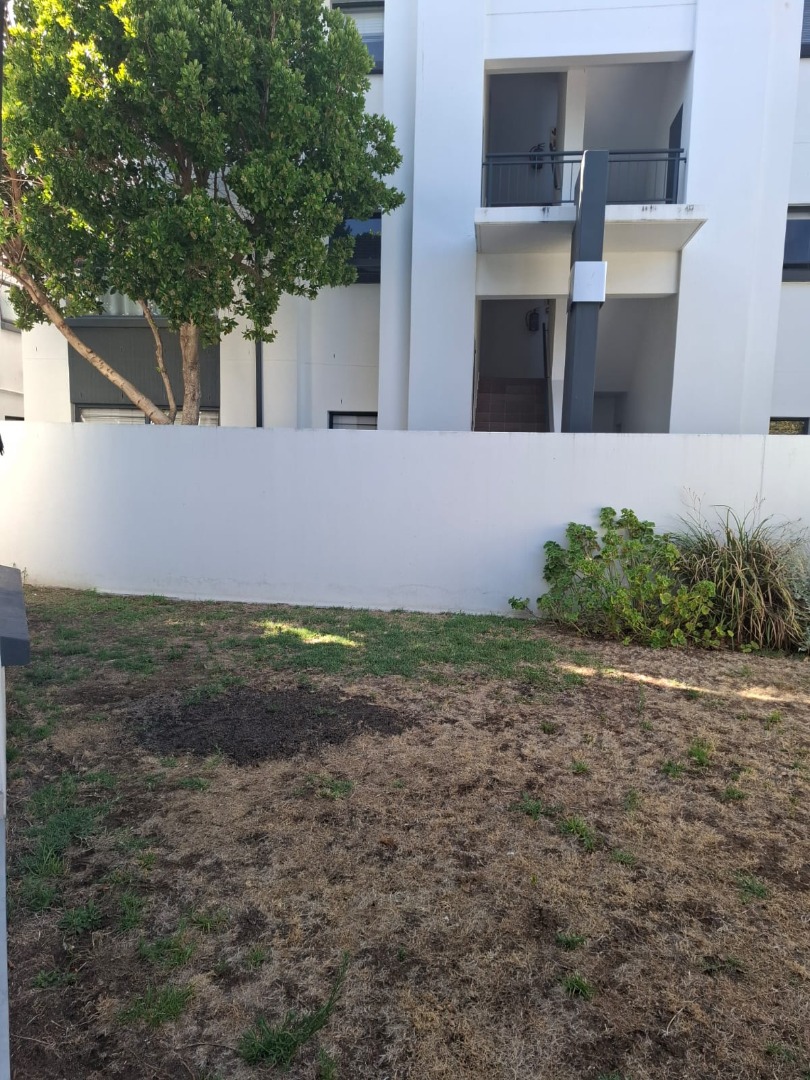 This 104sqm ground floor unit is situated close to main entrance walking out onto a lovely sunny garden. It offers a open plan kitchen with built in cupboards with granite tops and also includes a fridge, oven, hob and extractor with a washing machine and dishwasher. The lounge area offers enough space for a dining room table as well as a lounge. From the lounge, you walk out with a glass sliding door onto a patio and garden.