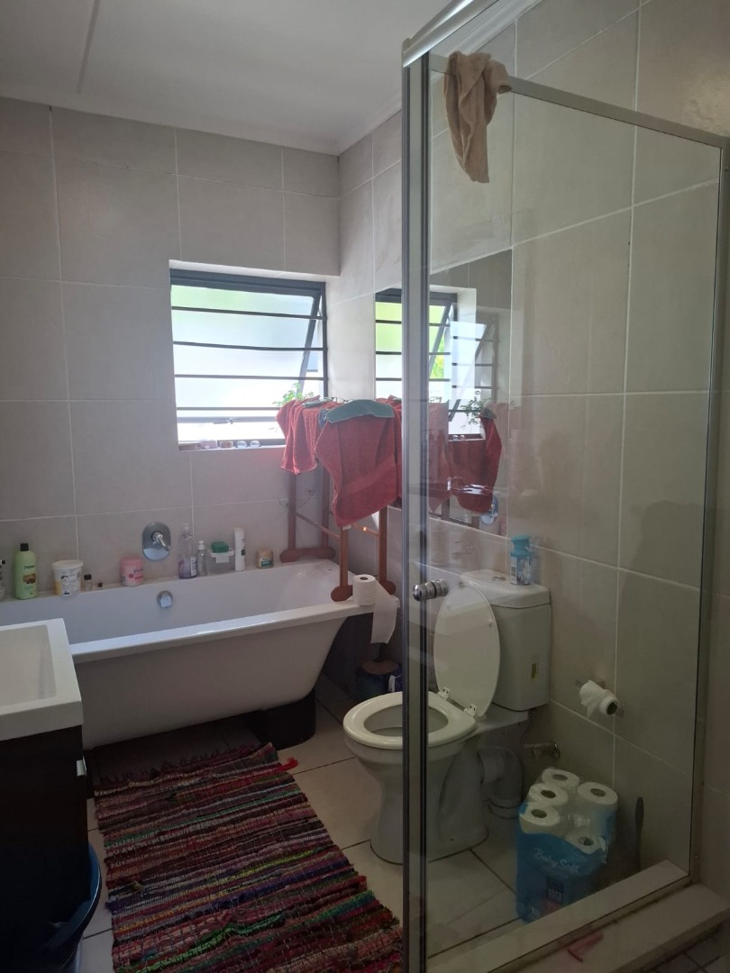 Three double sized bedrooms with built in cupboards whereof the guest bathroom offers a bath, shower, basin and toilet. The on suite receives morning sun with a shower, basin and toilet. The unit is tiled throughout as well as tiles in the bathrooms.