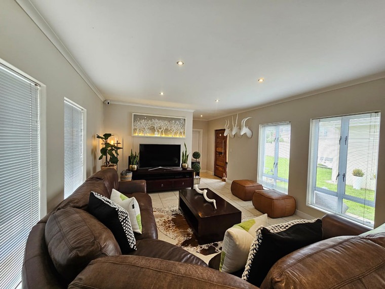 This property offers a large lounge and dining area as well as a TV lounge all open plan to a well equipped kitchen and scullery. A sun filled patio with built in braai opens onto the level garden. The 3 bedrooms are spacious, the main bedroom has an full en-suite bathroom, the remaining 2 bedrooms share the full family bathroom.