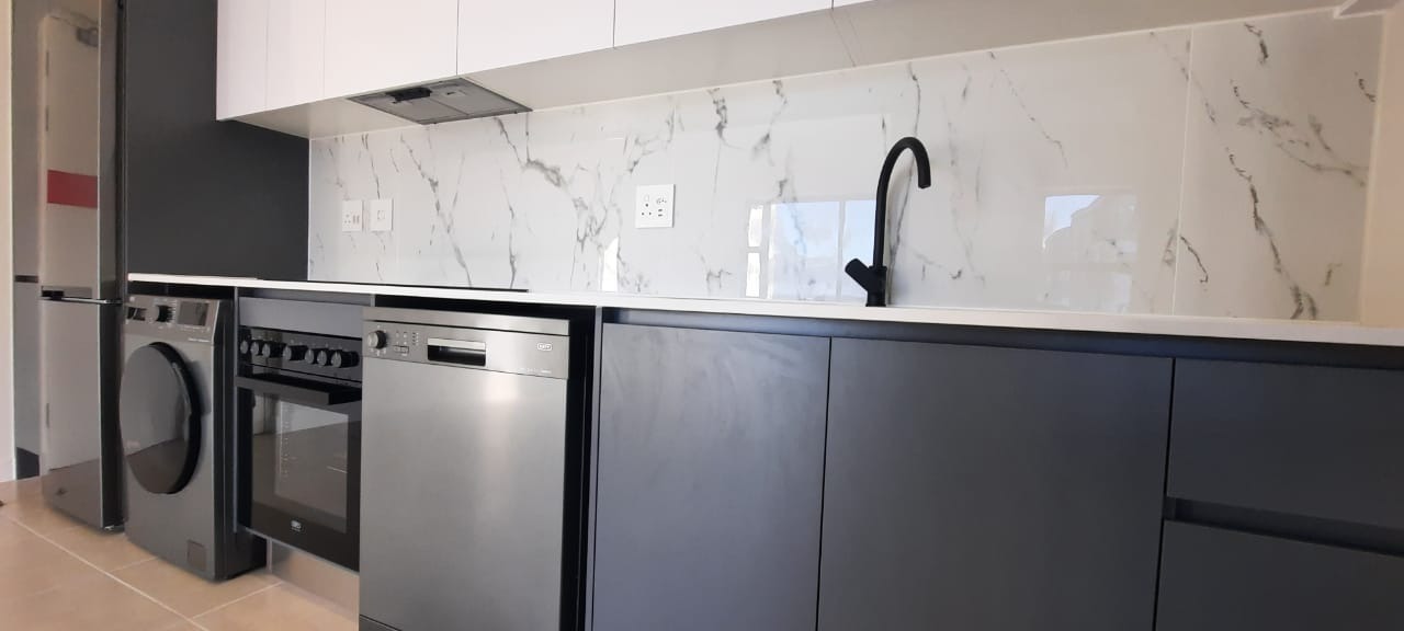 This open plan apartment consists of a living area that integrates with the kitchen area. The kitchen is beautifully designed and contains a fridge, dish washer and washing machine/tumble drier combo. The apartment also has one spacious bedroom that has sufficient cabinets for two peoples clothing. From the bedroom you will walk into an en suite shower bathroom with stunning finishes.