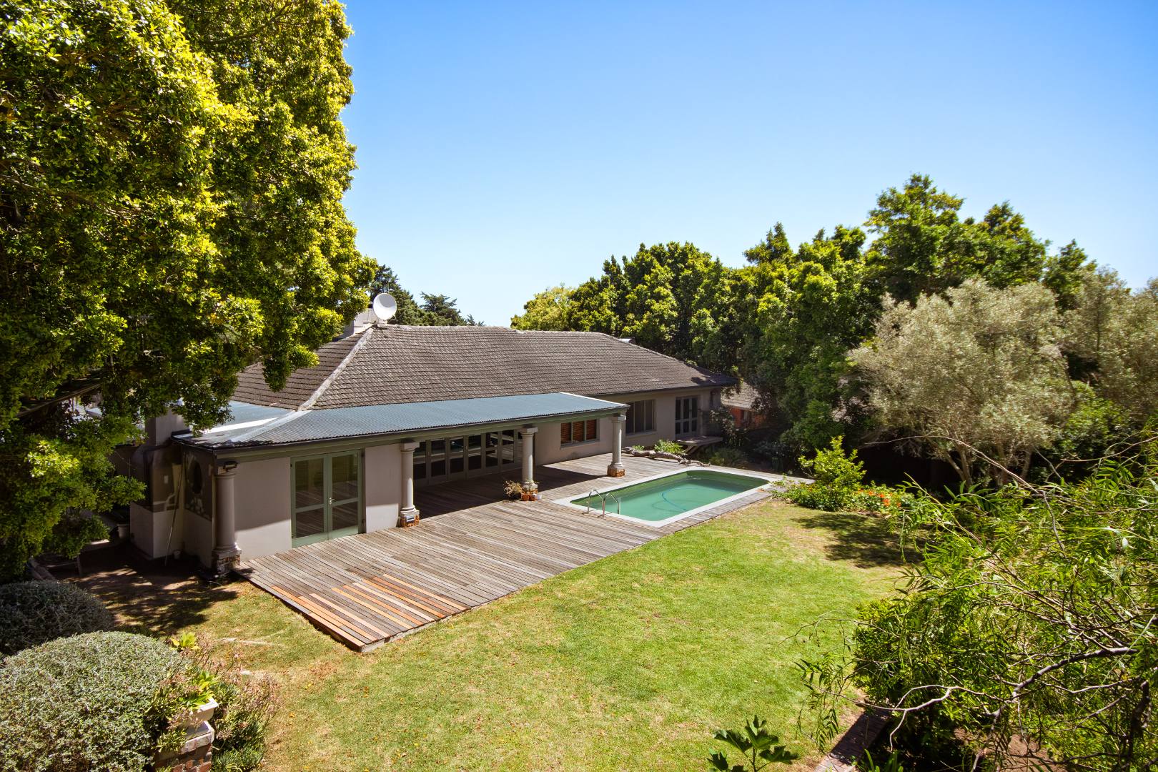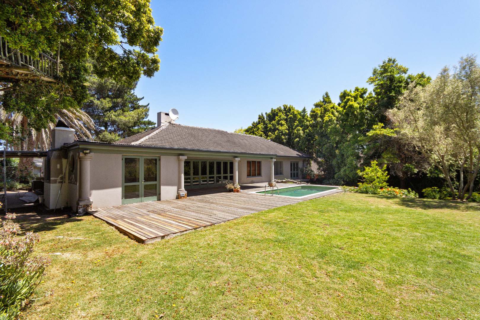 • Balau deck and 6m swimming pool, enjoying all-day sun and breathtaking Helderberg Mountain views.