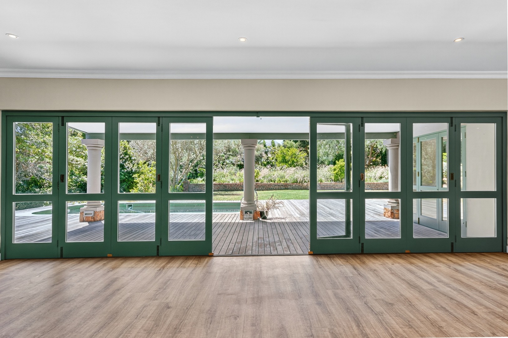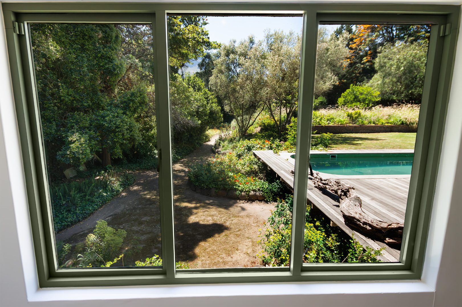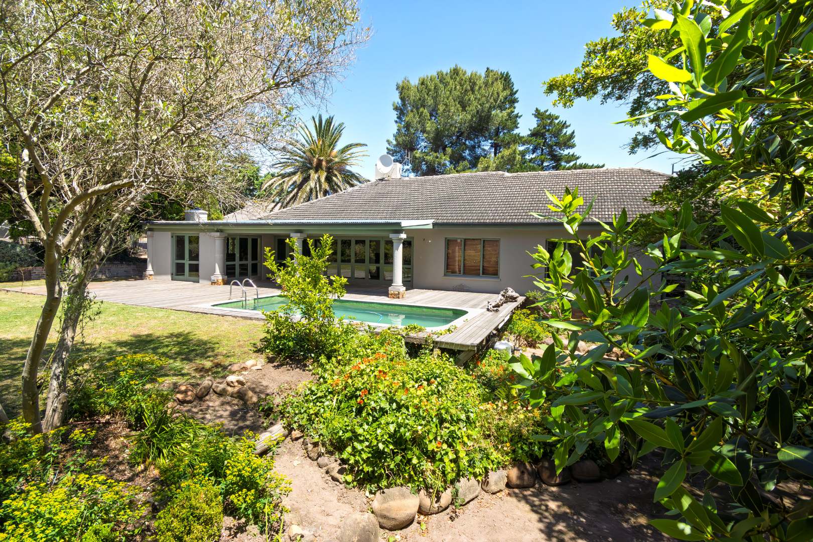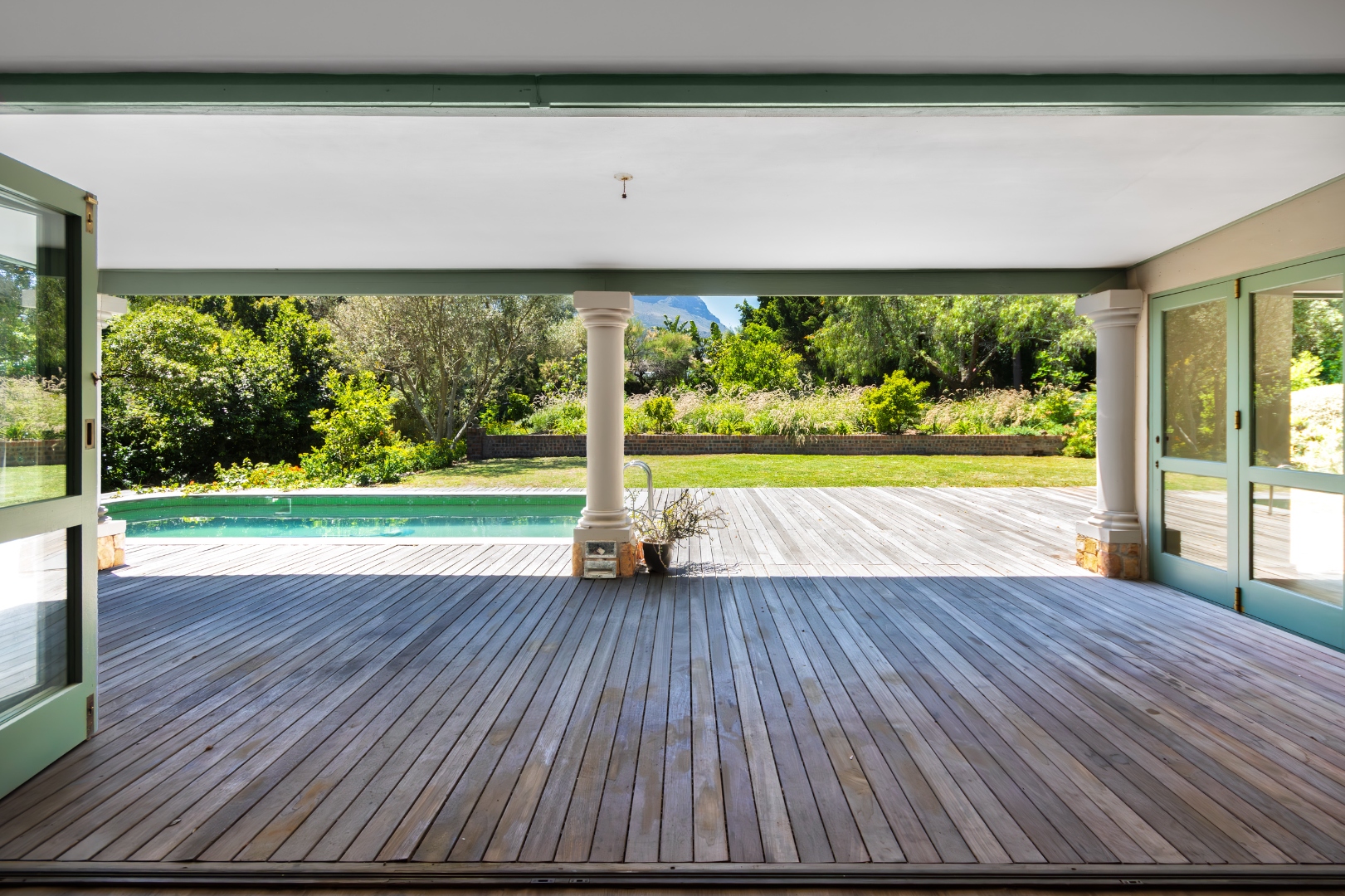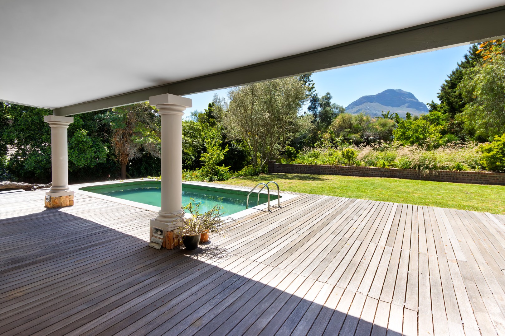• Balau deck and 6m swimming pool, enjoying all-day sun and breathtaking Helderberg Mountain views.