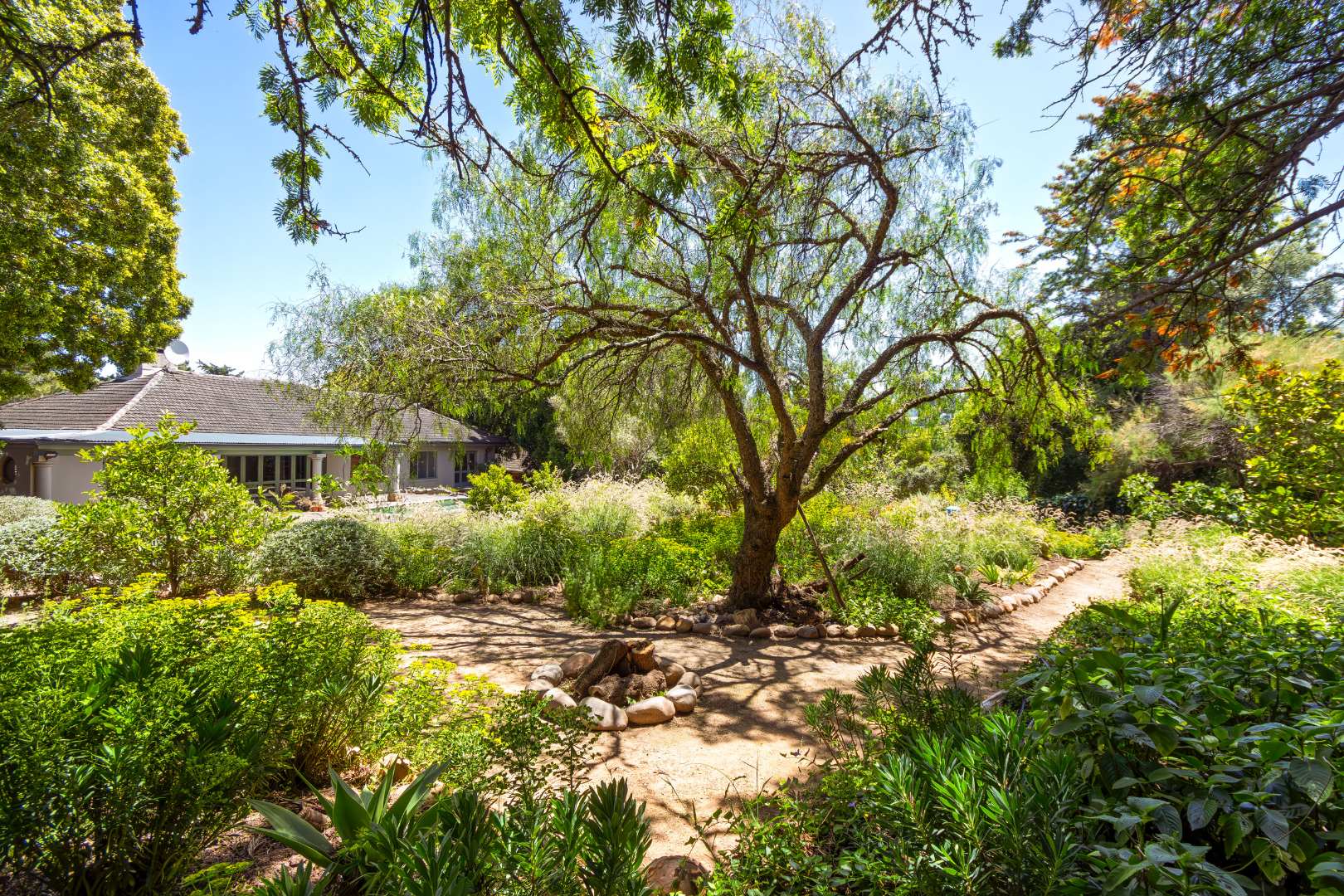 • Expansive 2,000 sqm plot with manicured, established gardens and mature trees.