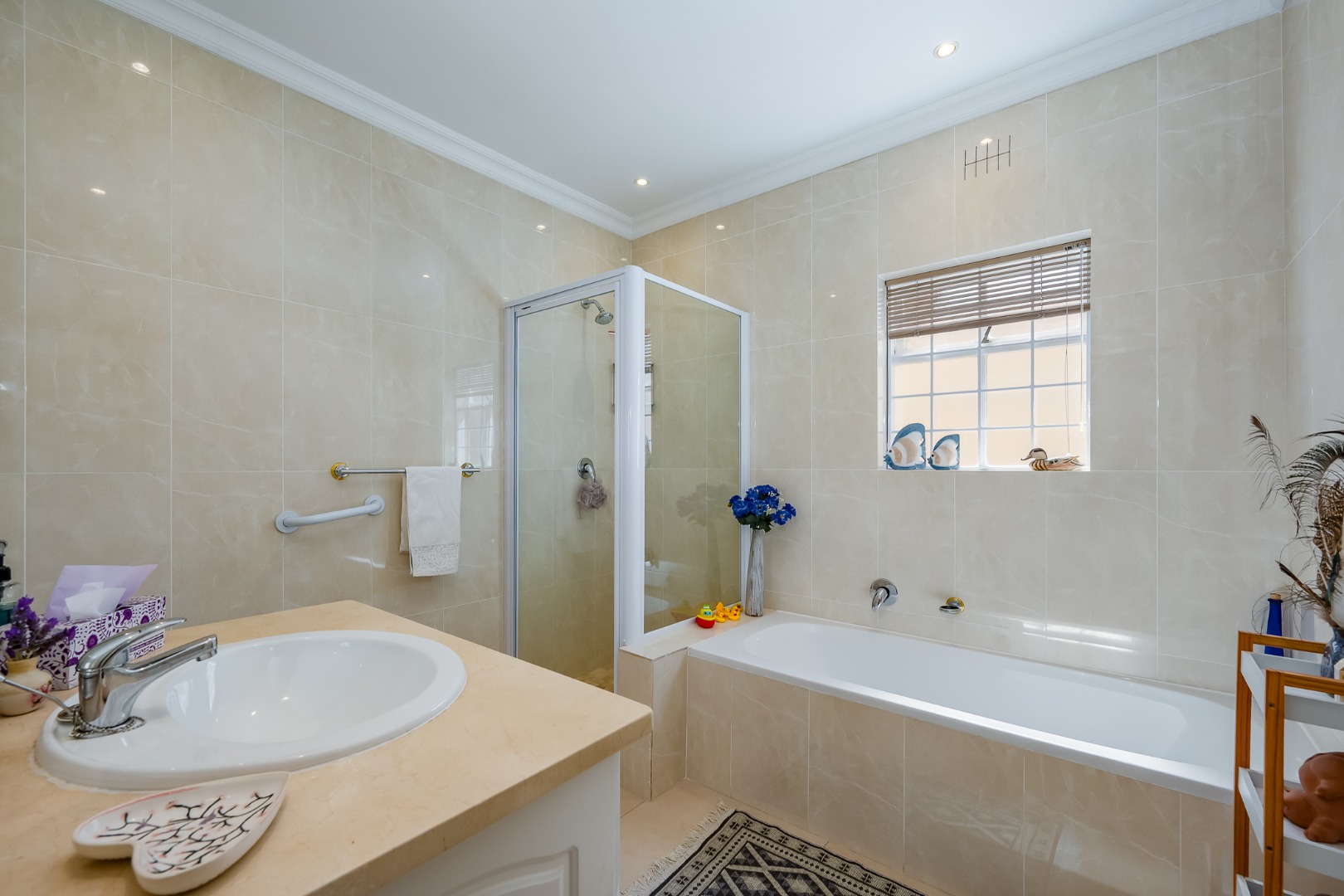 The property boasts a lush, well-maintained garden with attractive paved pathways and a private setting, perfect for outdoor enjoyment. Two additional sunrooms provide a bright space for relaxation, overlooking beautiful views. With a double automated garages with direct access into the house. Garage fitted with extra laundry points. Large under covered indoor braai ensures memorable entertainment for family and friends. This comfortable home is ideally suited for professionals or families seeking a comfortable and private living environment in a sought-after South African location.