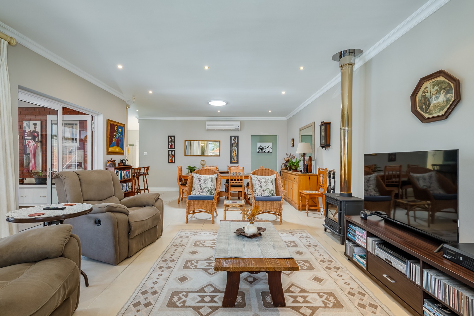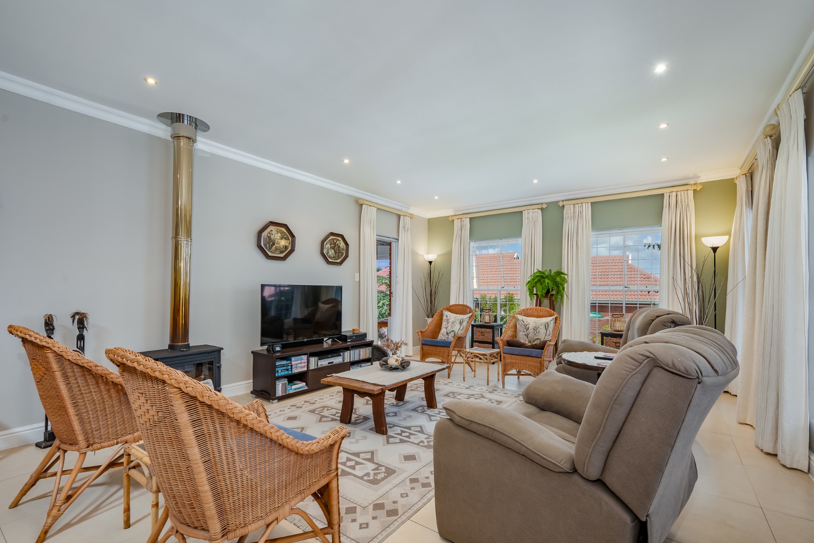 The property boasts a lush, well-maintained garden with attractive paved pathways and a private setting, perfect for outdoor enjoyment. Two additional sunrooms provide a bright space for relaxation, overlooking beautiful views. With a double automated garages with direct access into the house. Garage fitted with extra laundry points. Large under covered indoor braai ensures memorable entertainment for family and friends. This comfortable home is ideally suited for professionals or families seeking a comfortable and private living environment in a sought-after South African location.