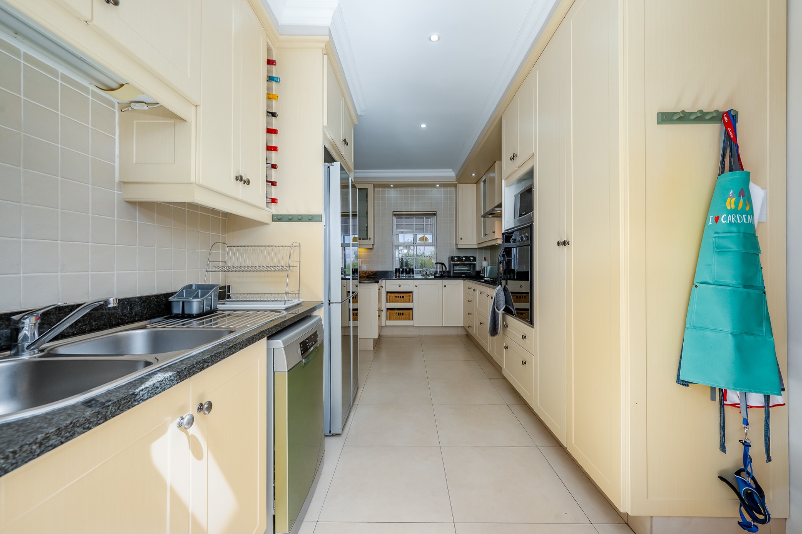 Discover this charming 3-bedroom, 2-bathroom home available for rent in the desirable Helena Heights, Somerset West. This residence offers an inviting open-plan layout, seamlessly connecting the living, dining, and kitchen areas. The well-appointed kitchen features cream-colored cabinetry, dark granite countertops, and integrated appliances including a built-in oven, gas hob, and extractor fan, complemented by a functional galley-style scullery for added convenience. Natural light floods the space, enhanced by recessed lighting and a skylight, while a cozy wood-burning stove and air conditioning ensure year-round comfort.