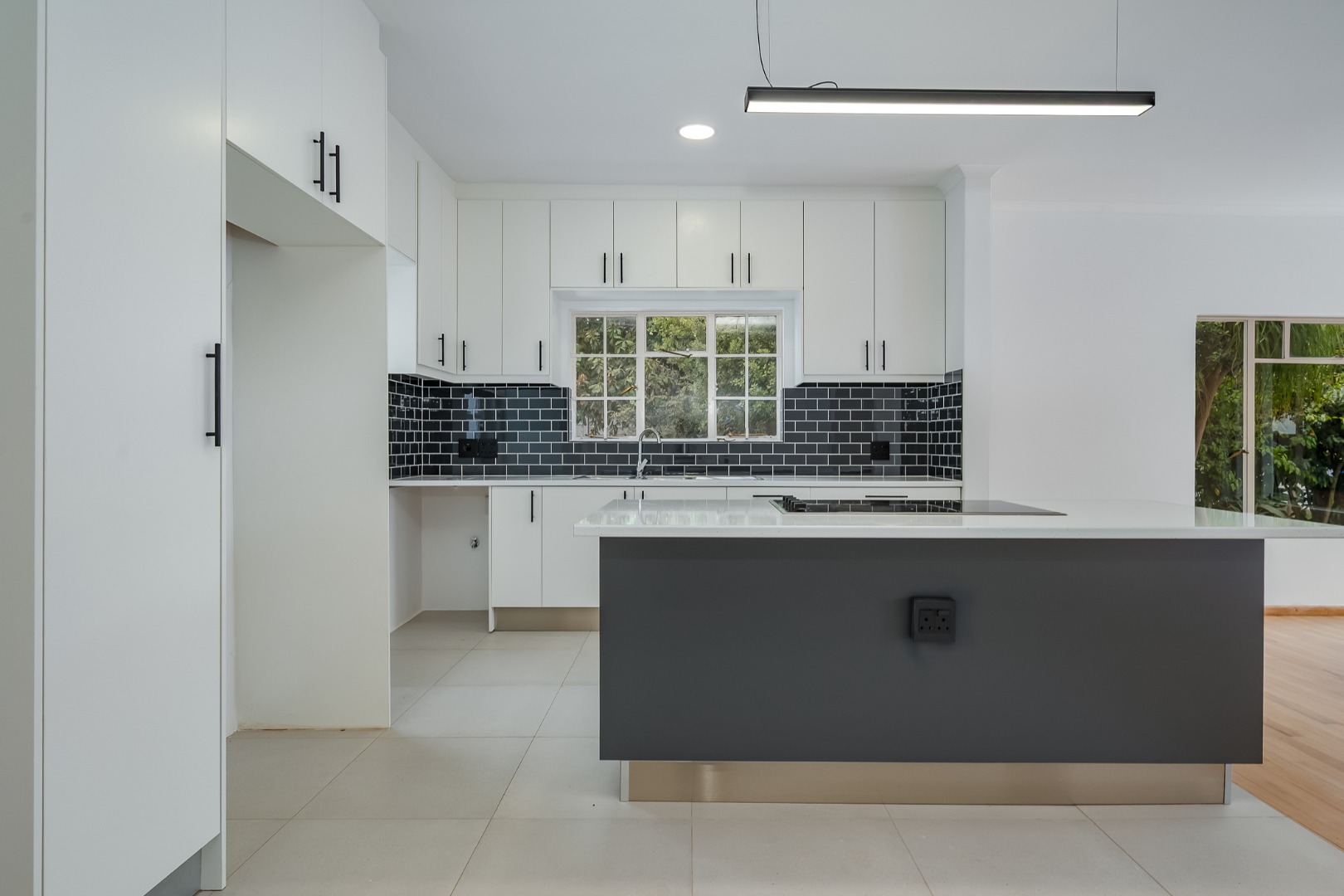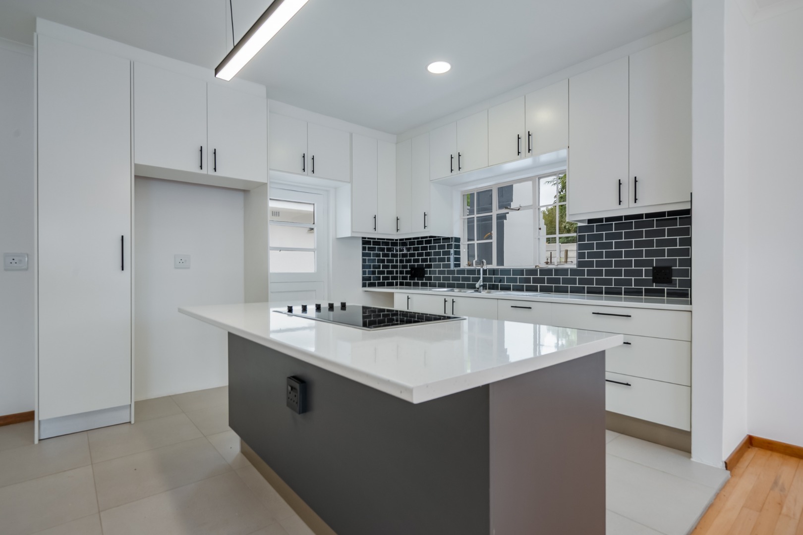 Discover this newly renovated charming house with 4 bedrooms, 2-bathrooms (shower, toilet and basin), 2nd bathroom with bath, showerhead, toilet and basin. This property boasts a contemporary open-plan design, seamlessly integrating the spacious lounge, dining room, and a stylish kitchen. The kitchen is a highlight, featuring sleek white cabinetry, a dark island with an integrated hob, and a chic black subway tile backsplash, all bathed in natural light from a large window.