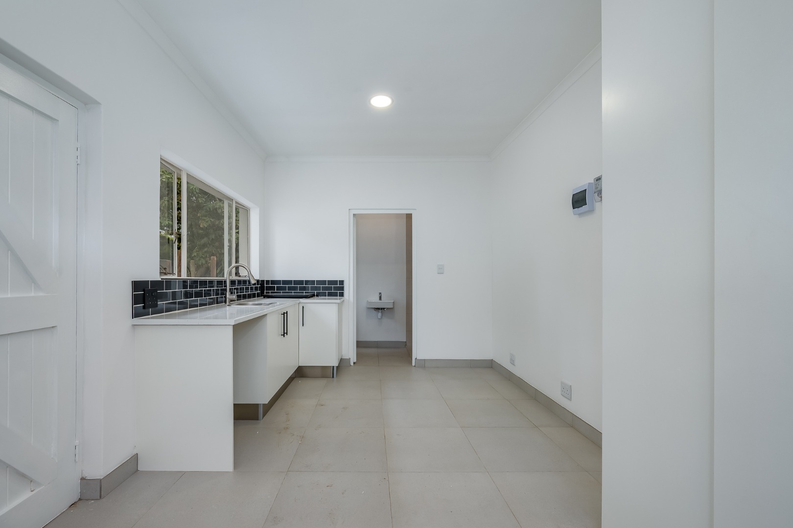 Designed for versatile family living, the property includes a separate flatlet, ideal for extended family, guests, or a dedicated home office. With pets allowed, it’s a truly welcoming environment. The exterior features a freshly painted white facade, a durable tiled roof, and a generous paved driveway leading to a double garage. The developing garden offers an opportunity to create your ideal outdoor sanctuary, complemented by mature trees.