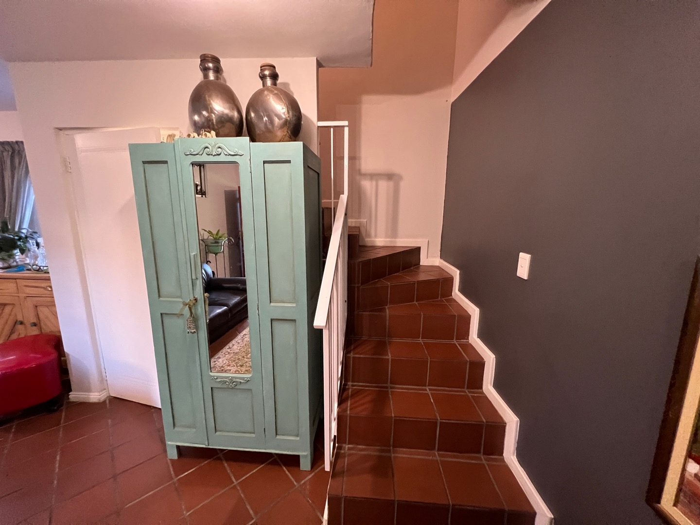 Ascending the stairs, you'll discover two well-appointed bedrooms and a bathroom, providing comfortable accommodation for residents or guests.
