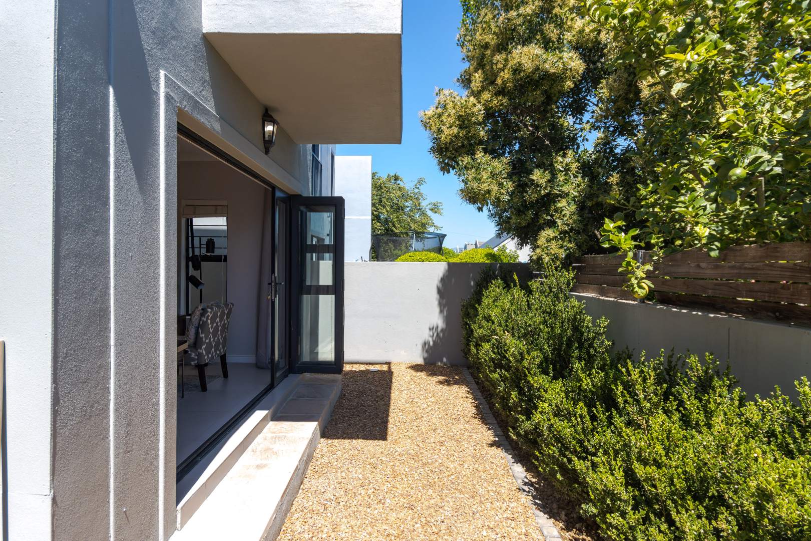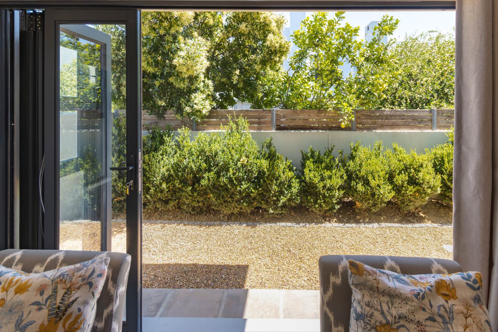 - Private Garden: Low-maintenance outdoor space accessible through stacking patio doors from the lounge.