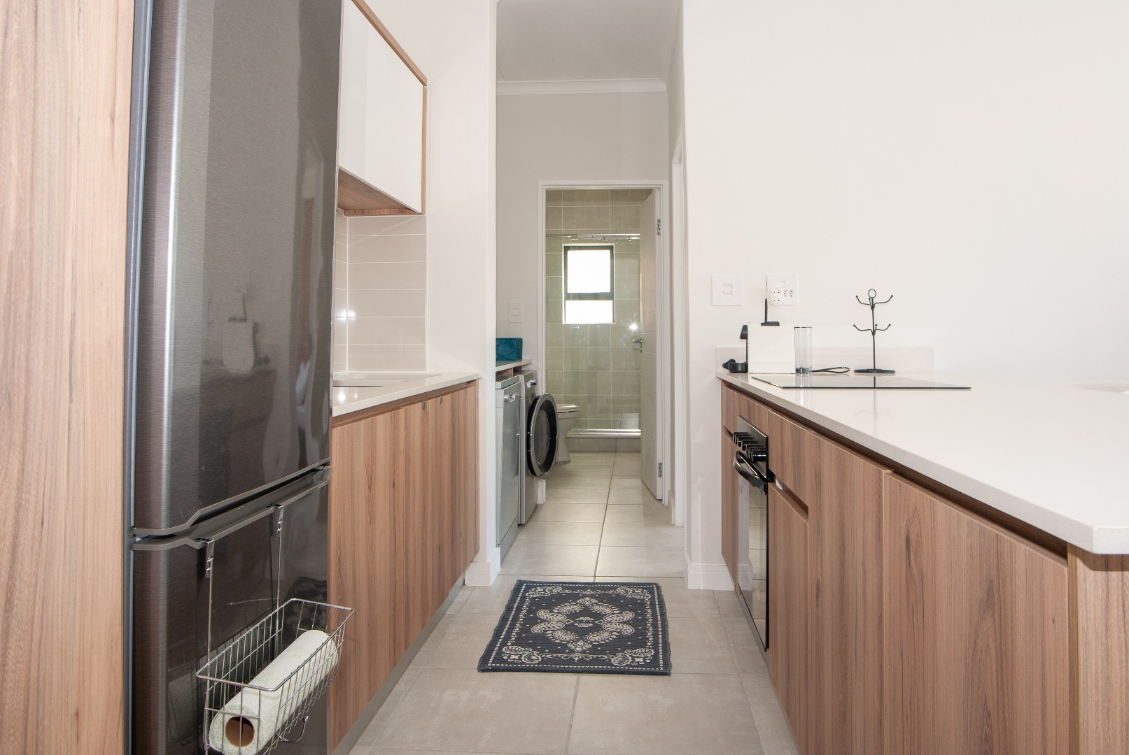 - Furnished with major appliances, including a fridge/freezer, oven and hob, washing machine/dryer, and dishwasher.