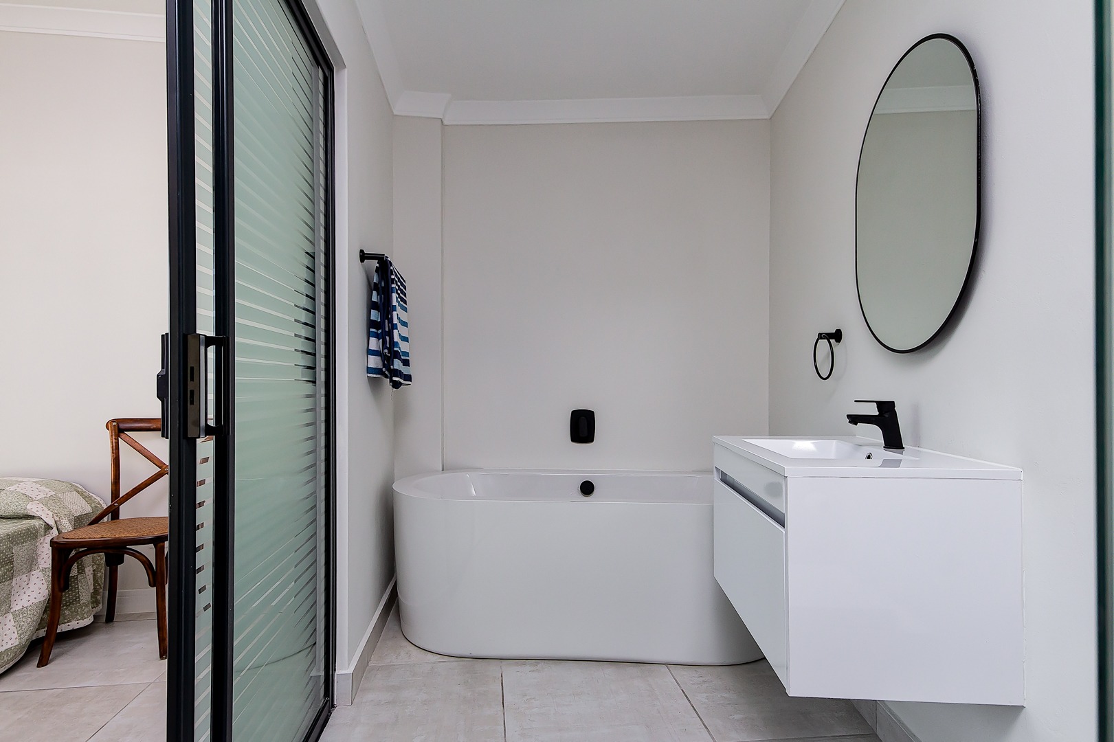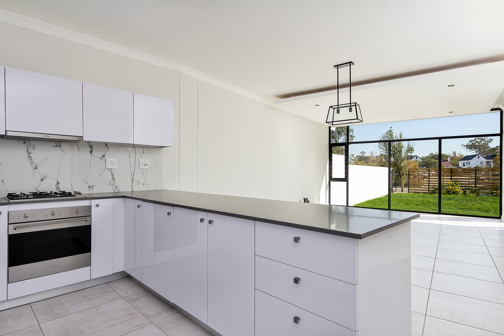 This beautiful modern ground floor apartment is situated in Somerset West in the historic Paardevlei Precinct within Paardevlei Lifestyle Estate. When you enter the apartment you will appreciate the large modern kitchen, open plan dining/living room leading to the patio and private garden. Kitchen appliances include a gas hob with extractor fan and electrical oven, built in fridge, dishwasher and washing machine/tumble drier combo. The crisp white cupboards contribute to the kitchens bright and modern feel.