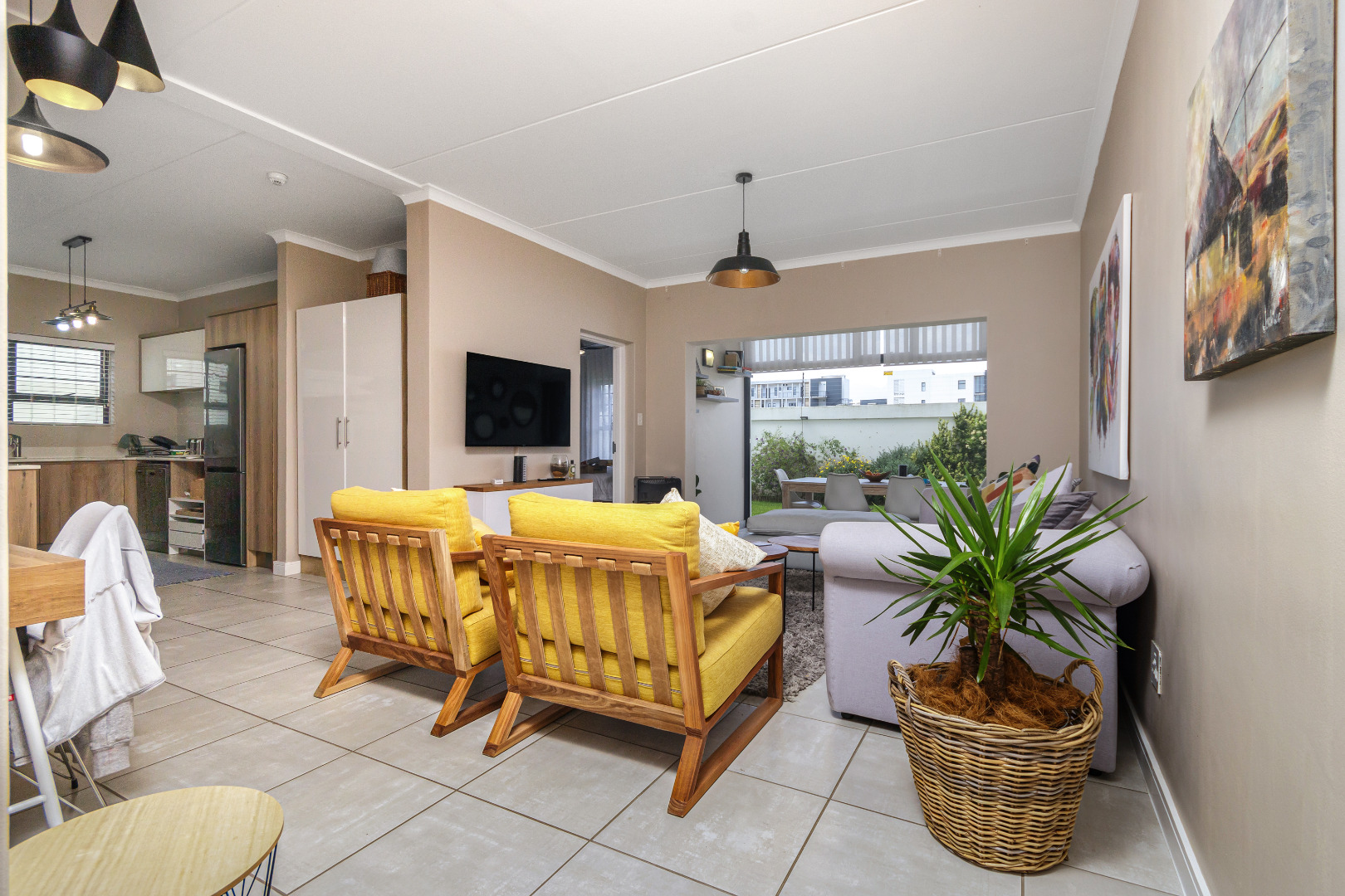 The heart of this apartment is the open-plan design that seamlessly connects the dining area, TV/living space, and a modern kitchen equipped with DEFY appliances, including a fridge/freezer, dishwasher and washing machine. The main bedroom boasts an en-suite bathroom, while the 2nd and 3rd bedroom shares a large full bathroom. The initial porch has been fully enclosed with stacking doors which adds just over 10m2 to the apartment. The estate is pet-friendly, ensuring your furry family members are welcome. Please note that there is an application procedure for the approval of pets.