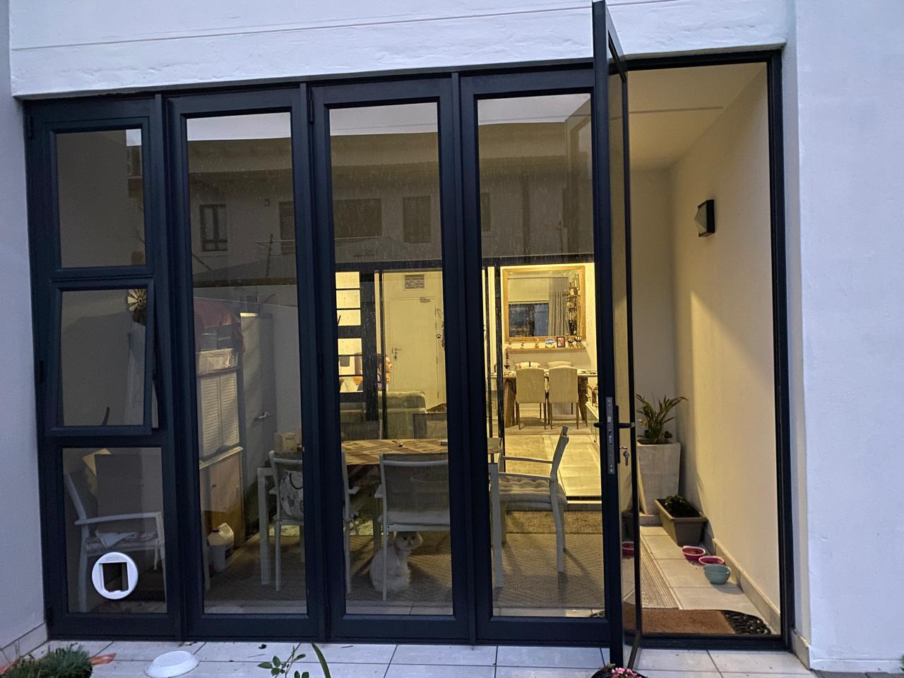 - Patio with stacking doors creating an enclosed extra room