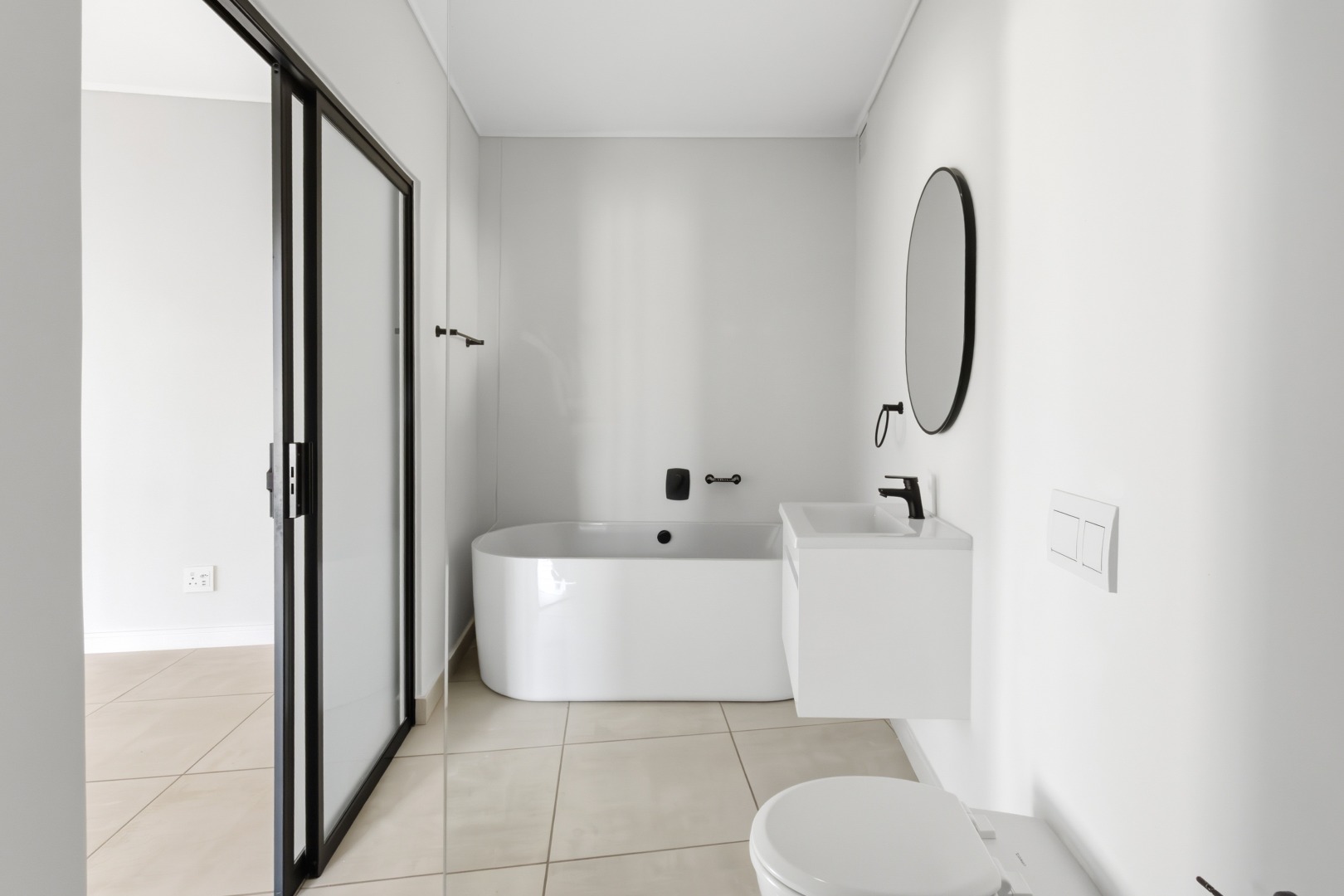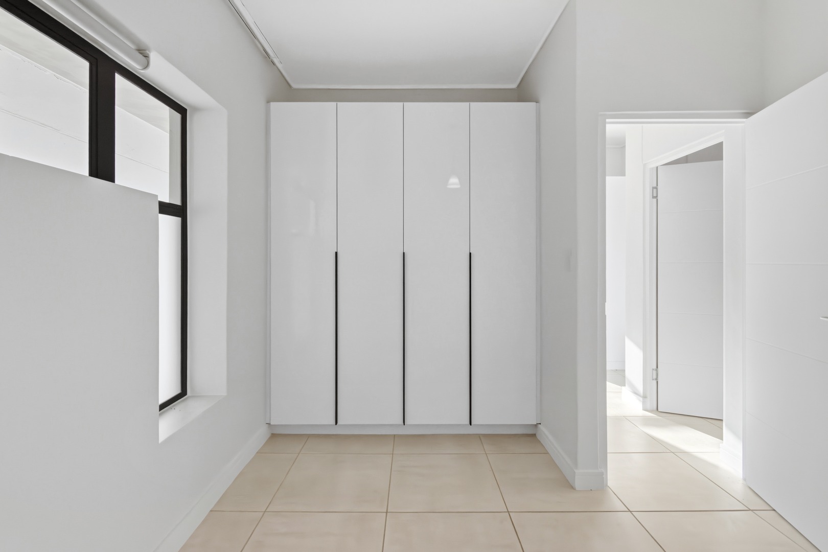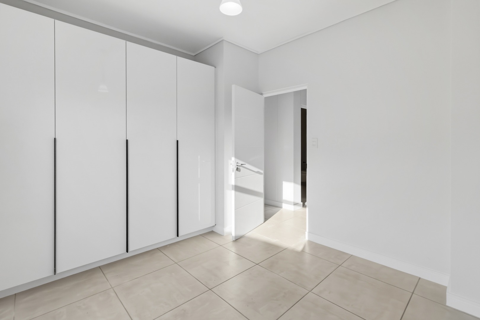 The master bedroom enjoys access to the garden and includes a full en-suite bathroom. The second and third bedrooms are serviced by a shared bathroom with a large shower and toilet. The apartment is tiled throughout.