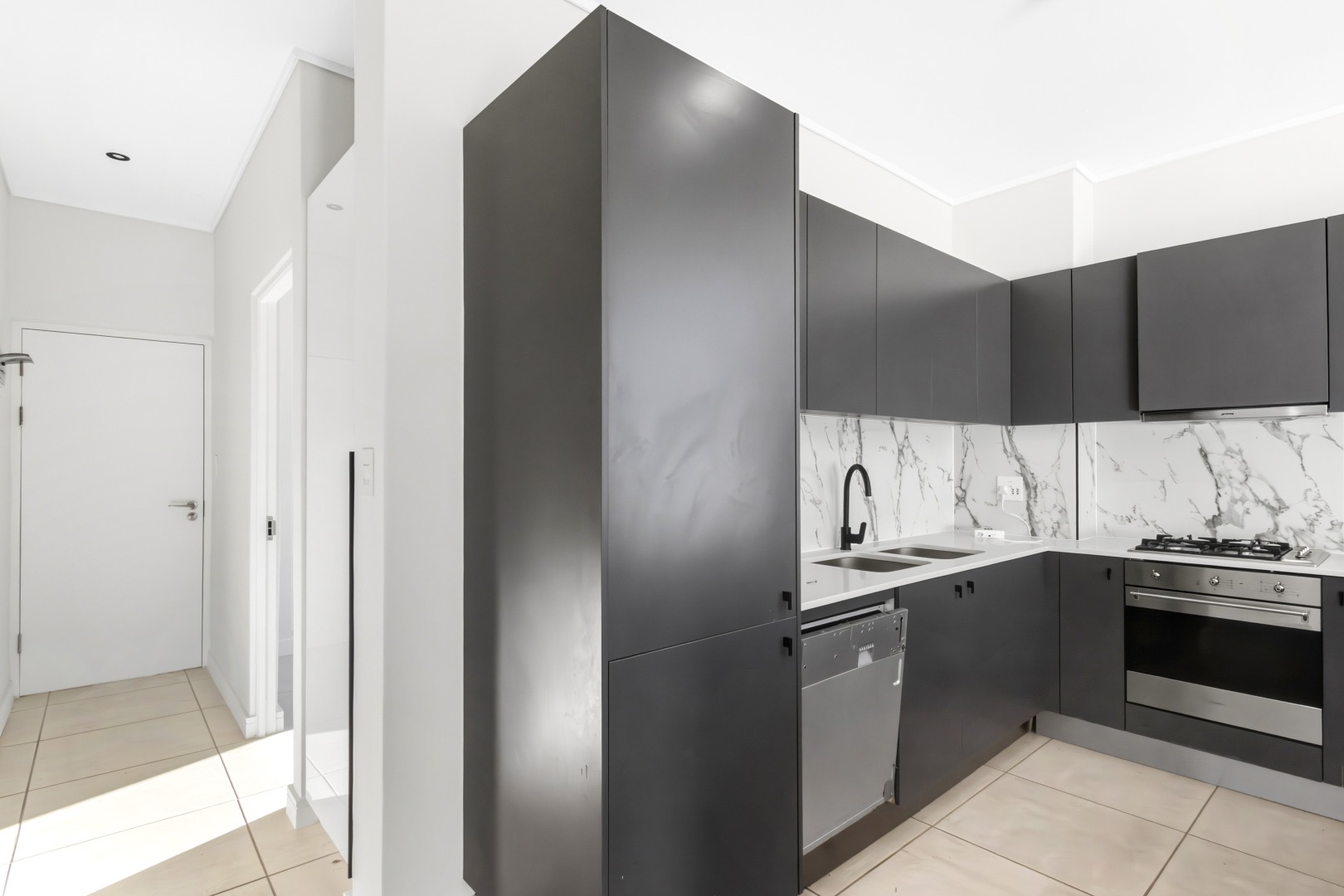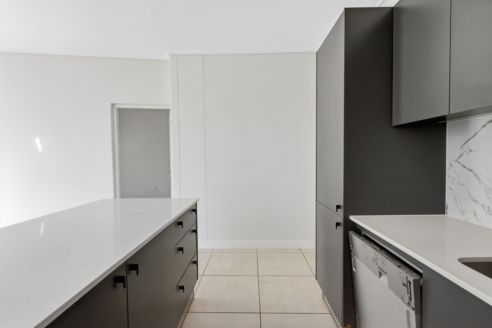 As you enter the apartment you will notice a large modern kitchen, open plan dining/living room leading to the patio and private garden. Kitchen appliances include a gas hob with extractor fan and electrical oven. The crisp white cupboards contribute to the kitchens bright and modern feel. The fridge, washing machine and dishwasher are integrated into the kitchen.