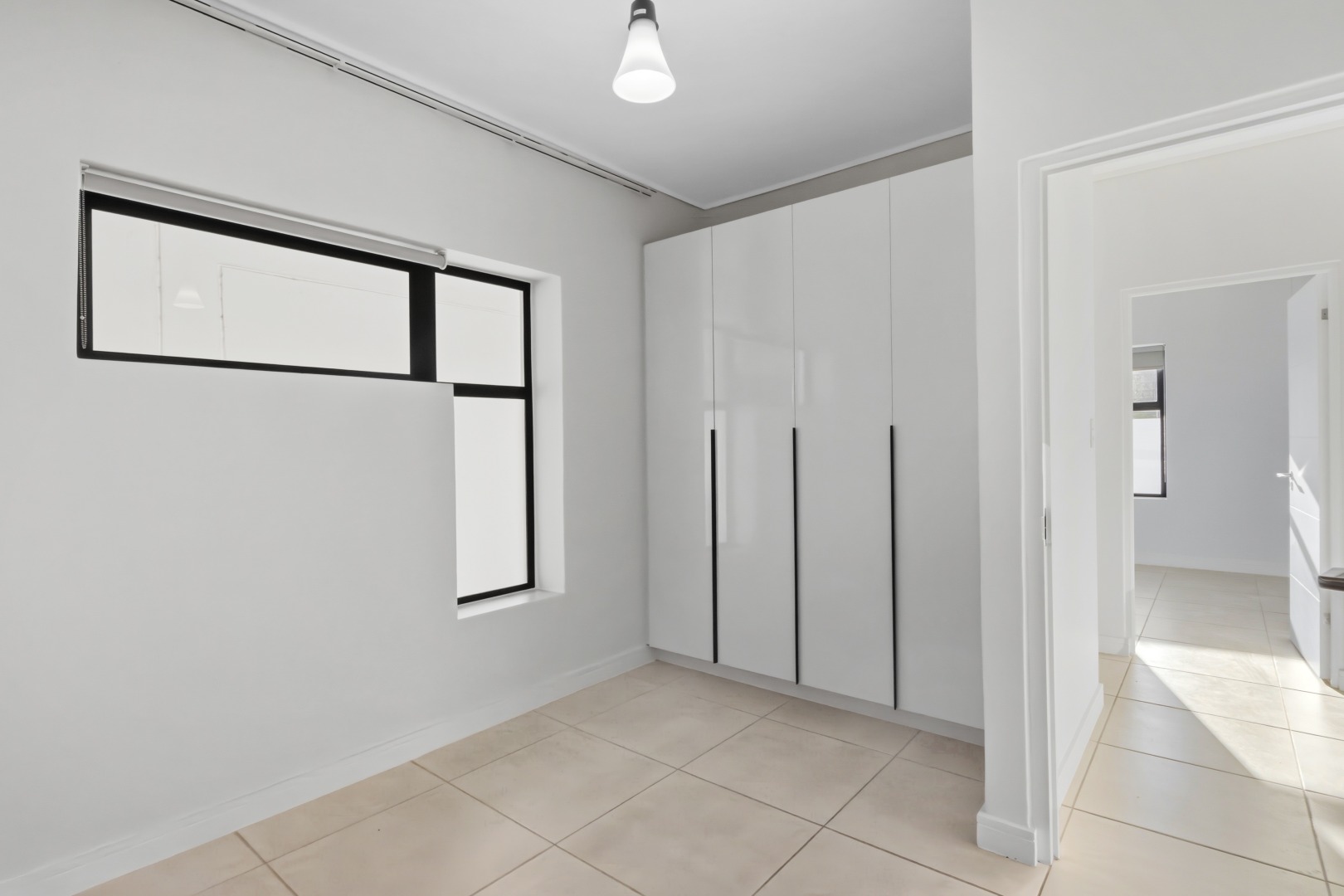 The master bedroom enjoys access to the garden and includes a full en-suite bathroom. The second and third bedrooms are serviced by a shared bathroom with a large shower and toilet. The apartment is tiled throughout.