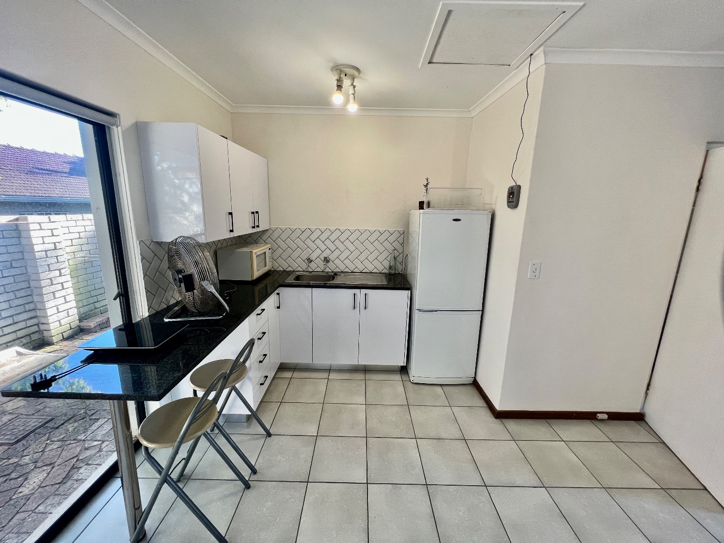 Situated in a peaceful, secure neighborhood. This pleasant, quiet, garden apartment is ideal for a young lady, student, or professional, of sober habits. Water and electricity will be charged according to usage. Wifi included. The flat is strictly for one single person only. A small dedicated entertainment/braai area is available to the tenants. Regrettably - not pet or smoker-friendly. Surrounding this home is lots of routes for mountain biking, hiking, and jogging. * Partially furnished