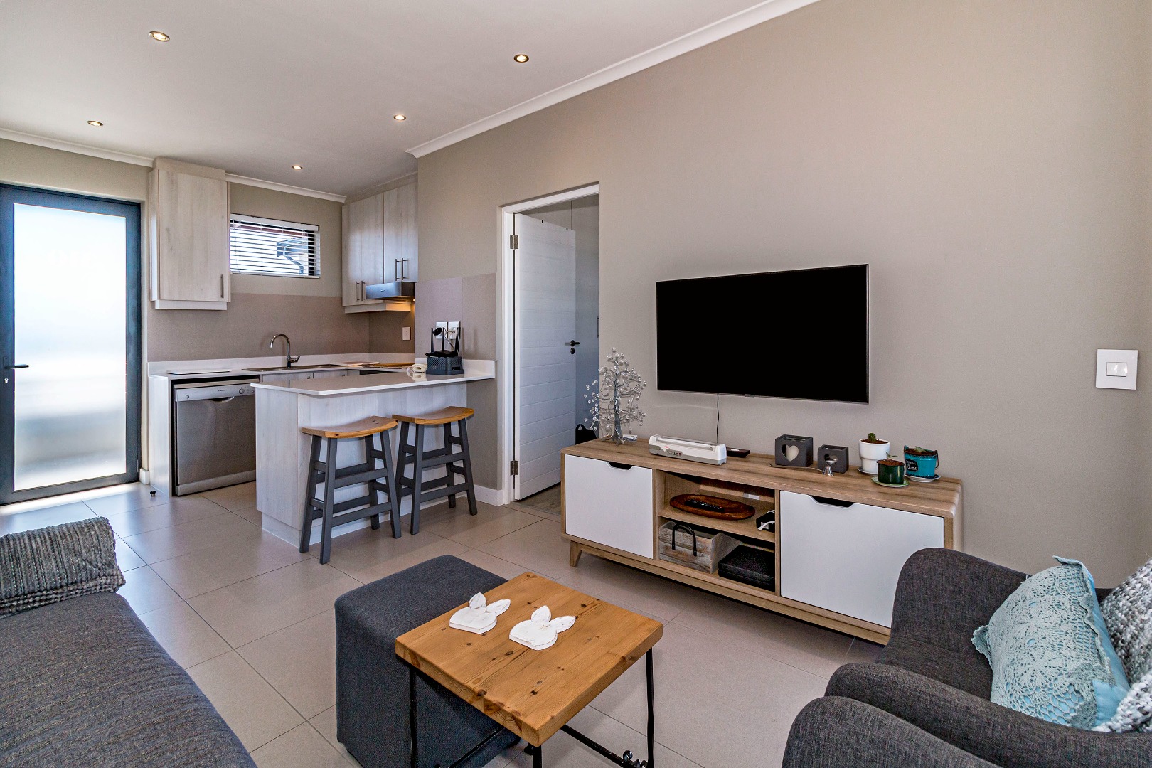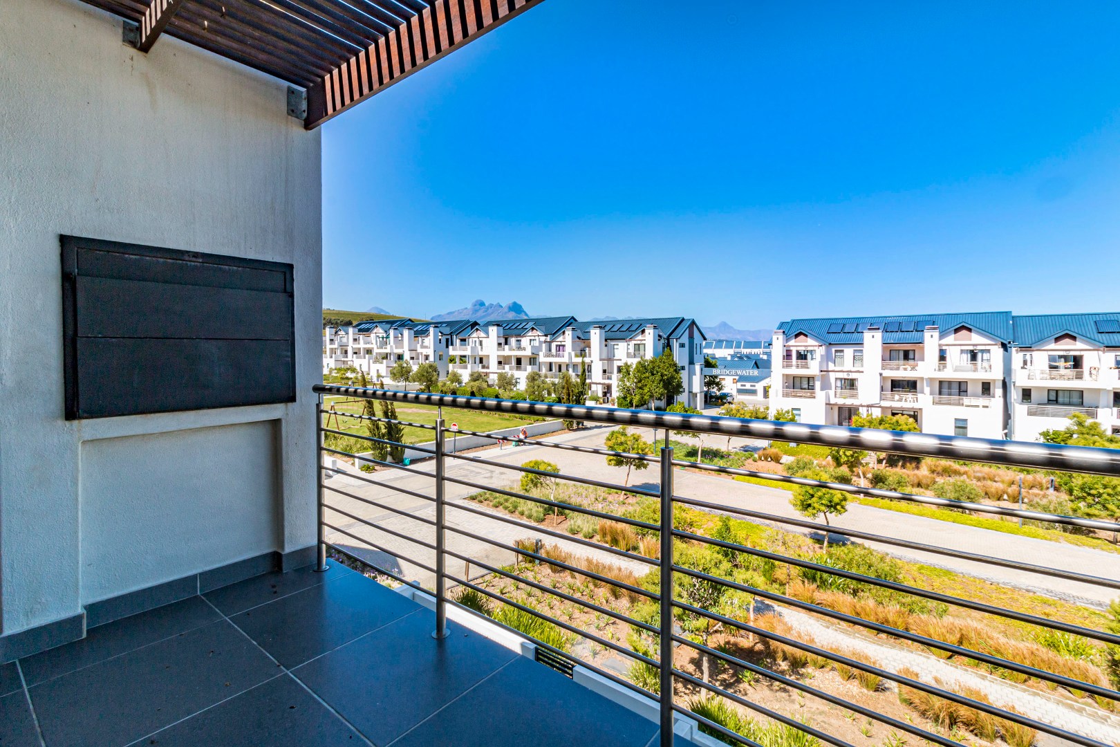 Situated far from the main roads this lovely apartment consists of a well equipped kitchen, lounge with balcony and built in braai, spacious bedroom and bathroom with lovely finishes.