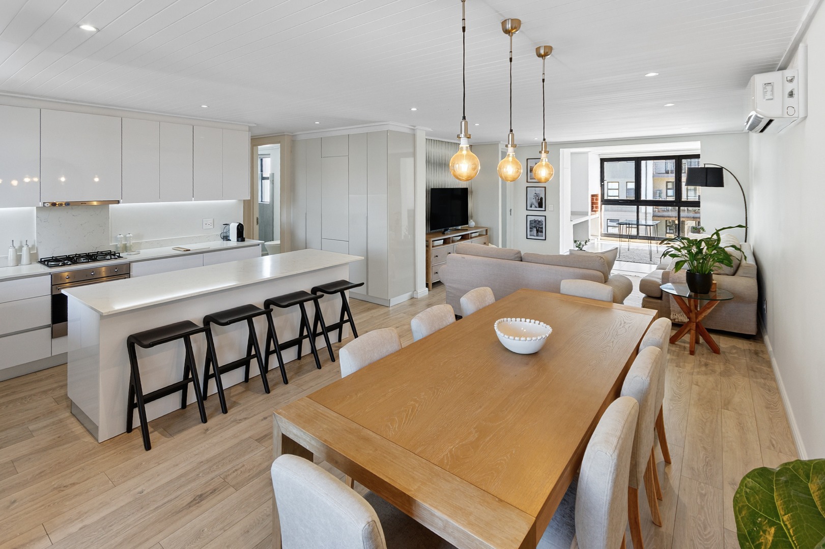 This extremely spacious and stylish two-bedroom apartment features a beautifully designed open-plan kitchen, lounge, and dining area flowing seamlessly into an enclosed braai area—perfect for year-round entertaining. The interior boasts a sophisticated neutral colour palette, creating a warm and inviting atmosphere throughout.