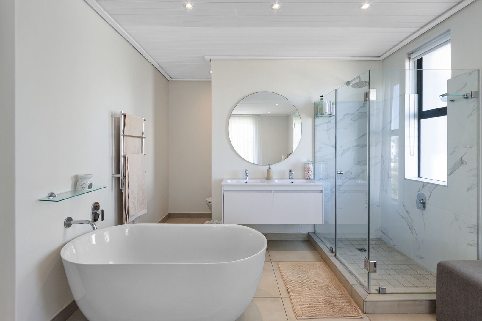 The spacious main bedroom includes an open-layout en-suite bathroom, offering a contemporary and luxurious retreat. The second bedroom is well-sized and serviced by a separate bathroom, making it ideal for guests, a child’s room, or a home office. Additional features include