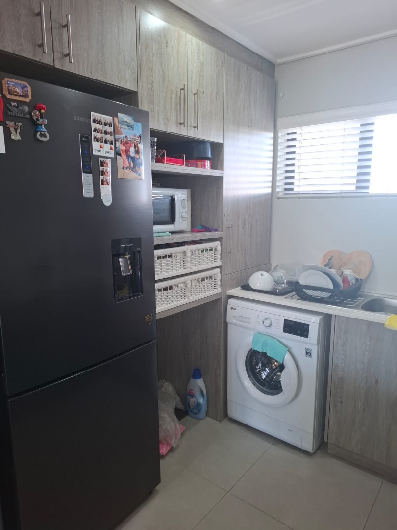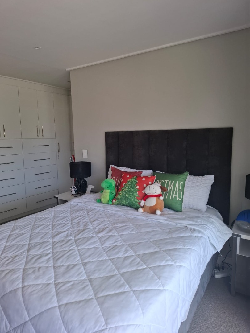 Discover modern living in this stylish 2-bedroom, 2-bathroom apartment located within the esteemed Sitari Country Estate in Somerset West. Spanning 113 sqm, this residence features an inviting open-plan layout seamlessly connecting the living, dining, and kitchen areas. The contemporary kitchen boasts an island with seating, a freestanding gas stove and extractor, light wood-look cabinetry, and sleek white countertops, complemented by recessed lighting throughout the space. Direct access from the living area leads to a generous outdoor balcony, perfect for entertaining offering space for a lounge and dining room furniture with a built in braai.