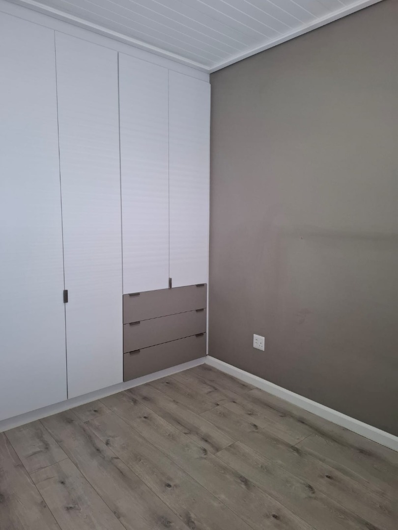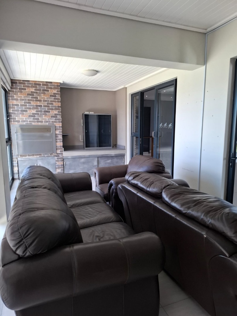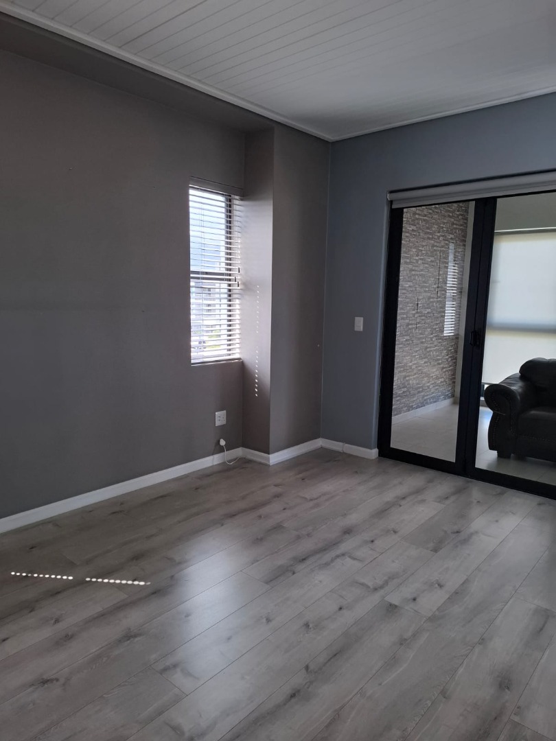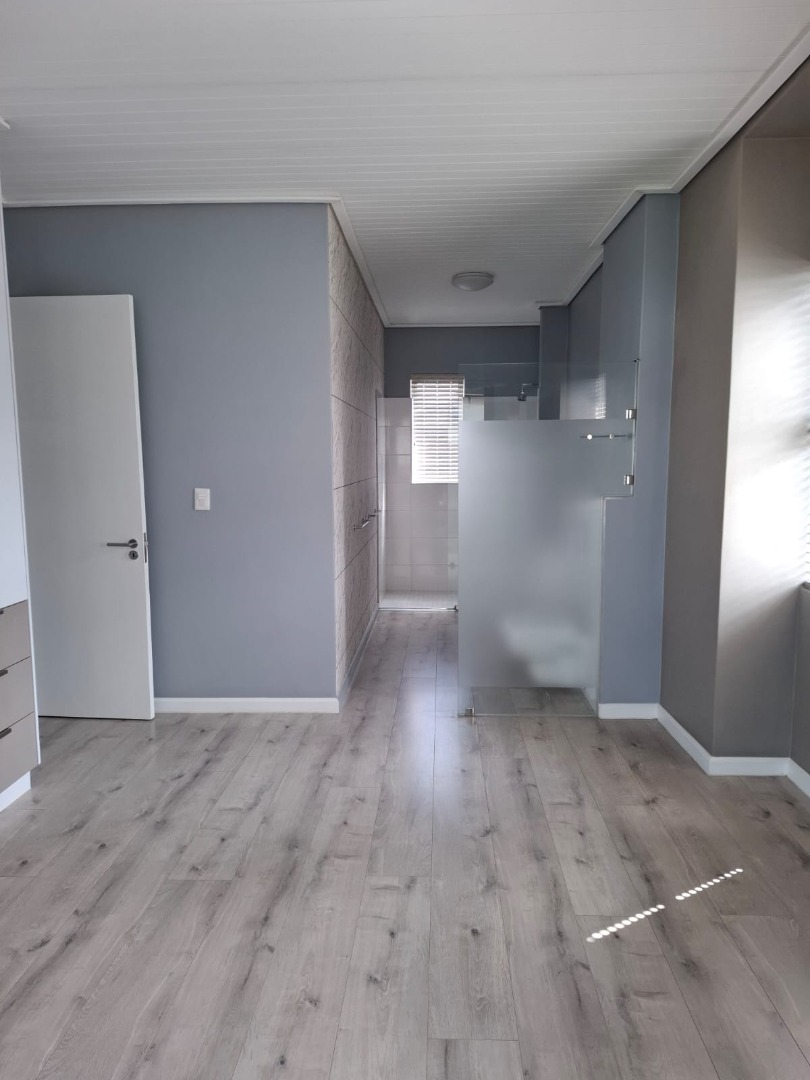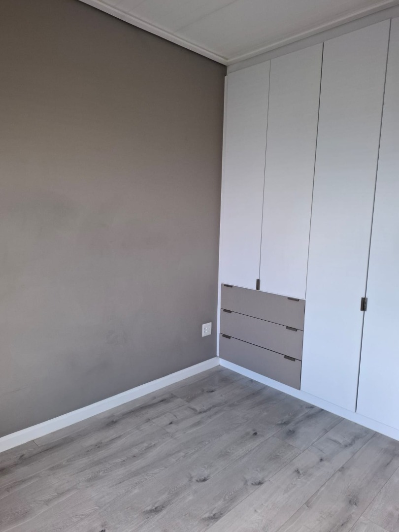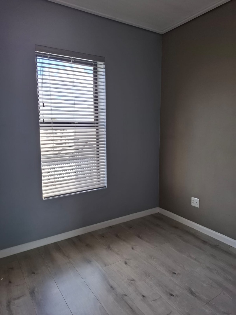 As you walk into this delightful,classy and spacious top floor apartment, you will find on your right hand side a slick, modern contemporary kitchen that offers ample cupboard space, engineered stone counter-tops and a built-in oven, extractor, hob, microwave and fridge/freezer. There is provision for a washing machine, tumbledrier and dishwasher. On top of it all, a generous kitchen island to enjoy breakfasts. There is more than enough space to house a dining room table seating 8 - 10 people, a spacious lounge and family room with a built in braai for entertaining or for the cold winter nights overlooking the estate.