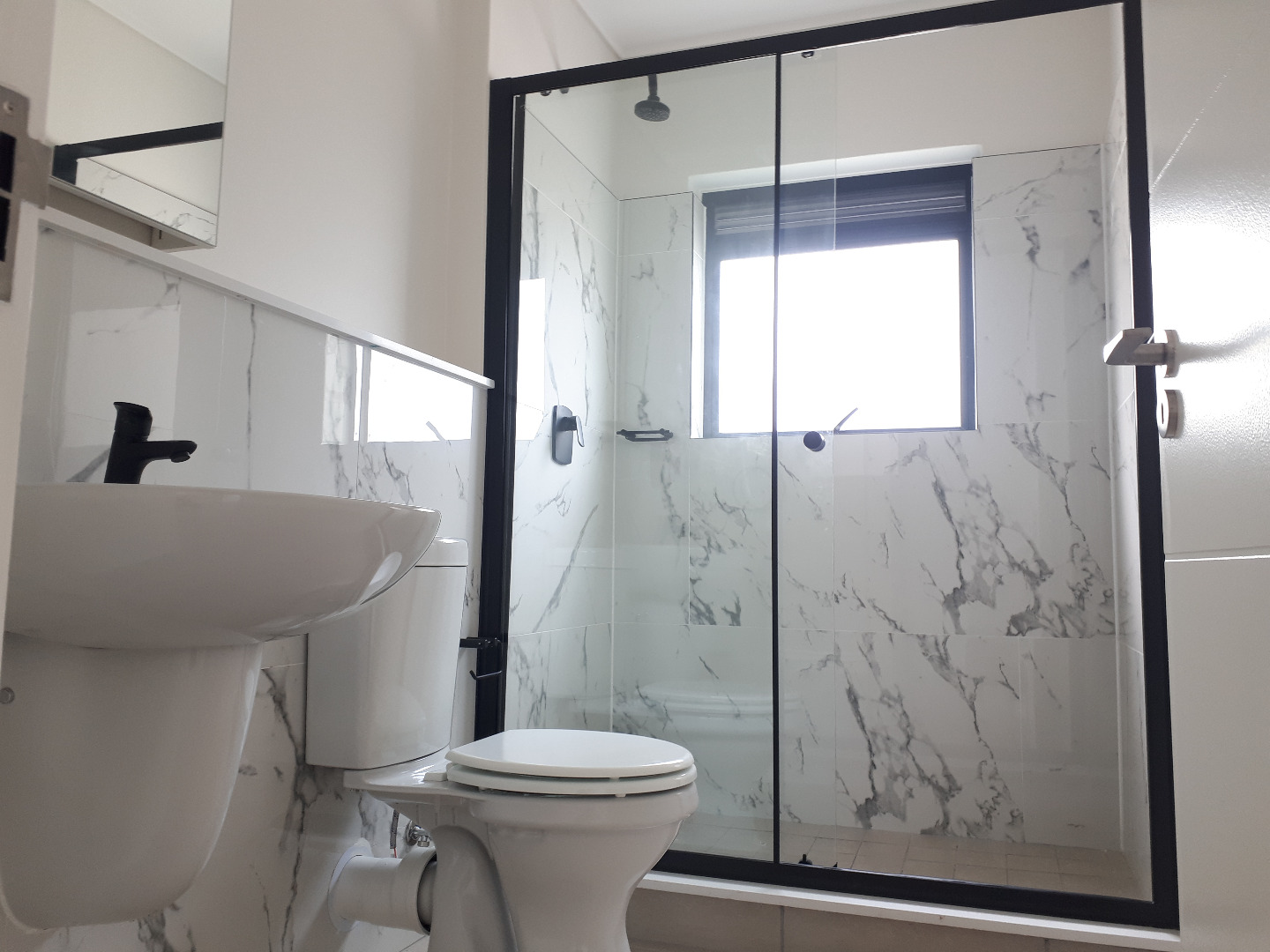 The spacious bedroom includes ample cupboard space suitable for two people and the bathroom is separate with contemporary finishes.