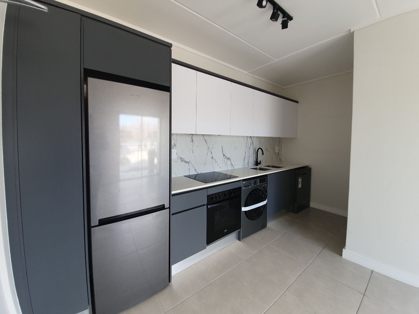 This apartment consists of one spacious bedroom and a open plan living room with kitchen. The kitchen is very well designed with beautiful finishes and contains a fridge, dish washer, stove and washing machine/tumble dryer combo.