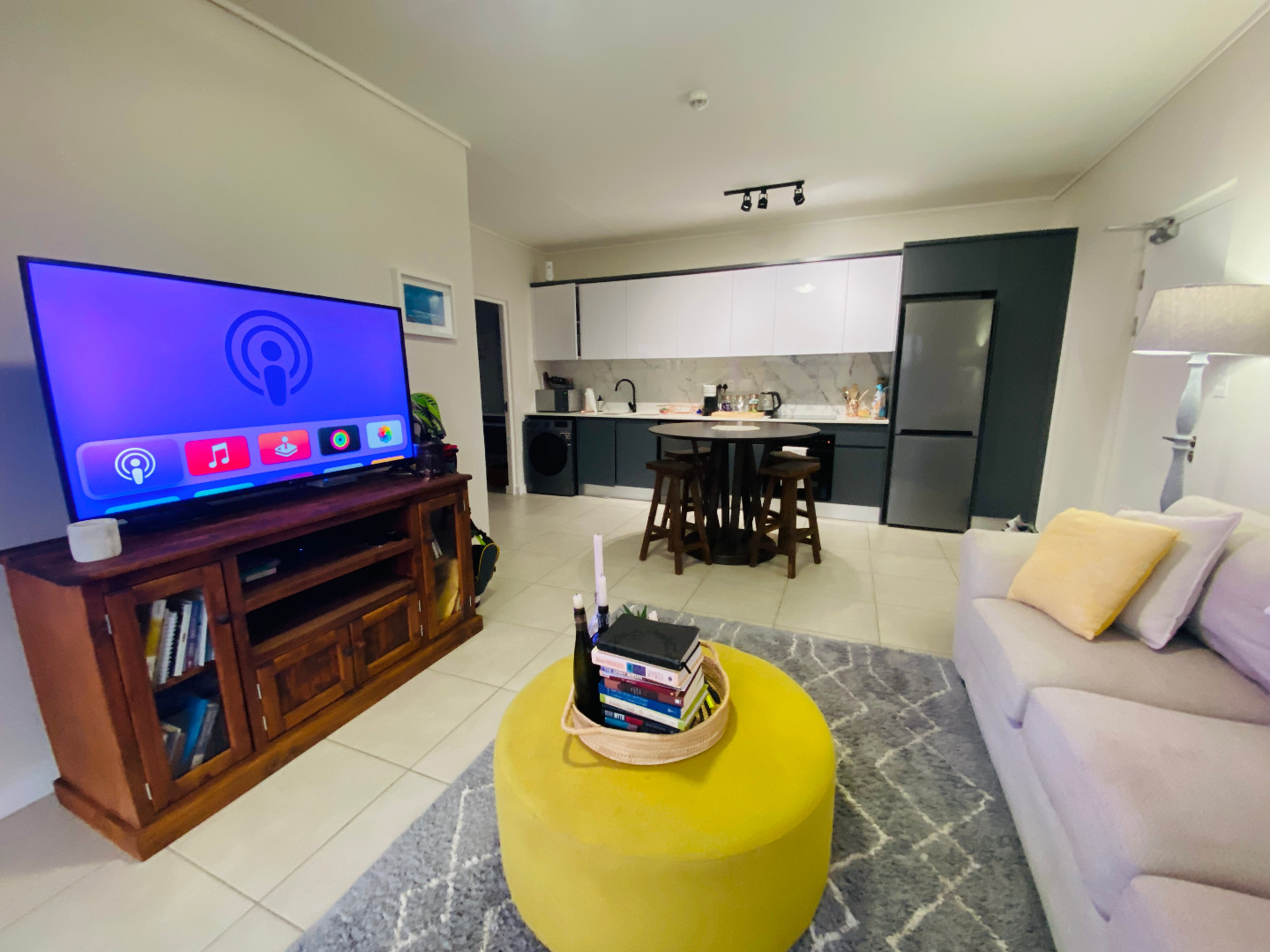 The apartment is beautifully designed with modern finishes and is open plan. The kitchen is fitted with a Glass Hob, Extractor fan, Oven, Fridge/Freezer, Washing Machine/Tumble Dryer Combination, and Dishwasher. From the kitchen you will enter the bedroom which have built in cupboards and there is also a separate bathroom with a shower which is fitted with stunning matt black finishes.