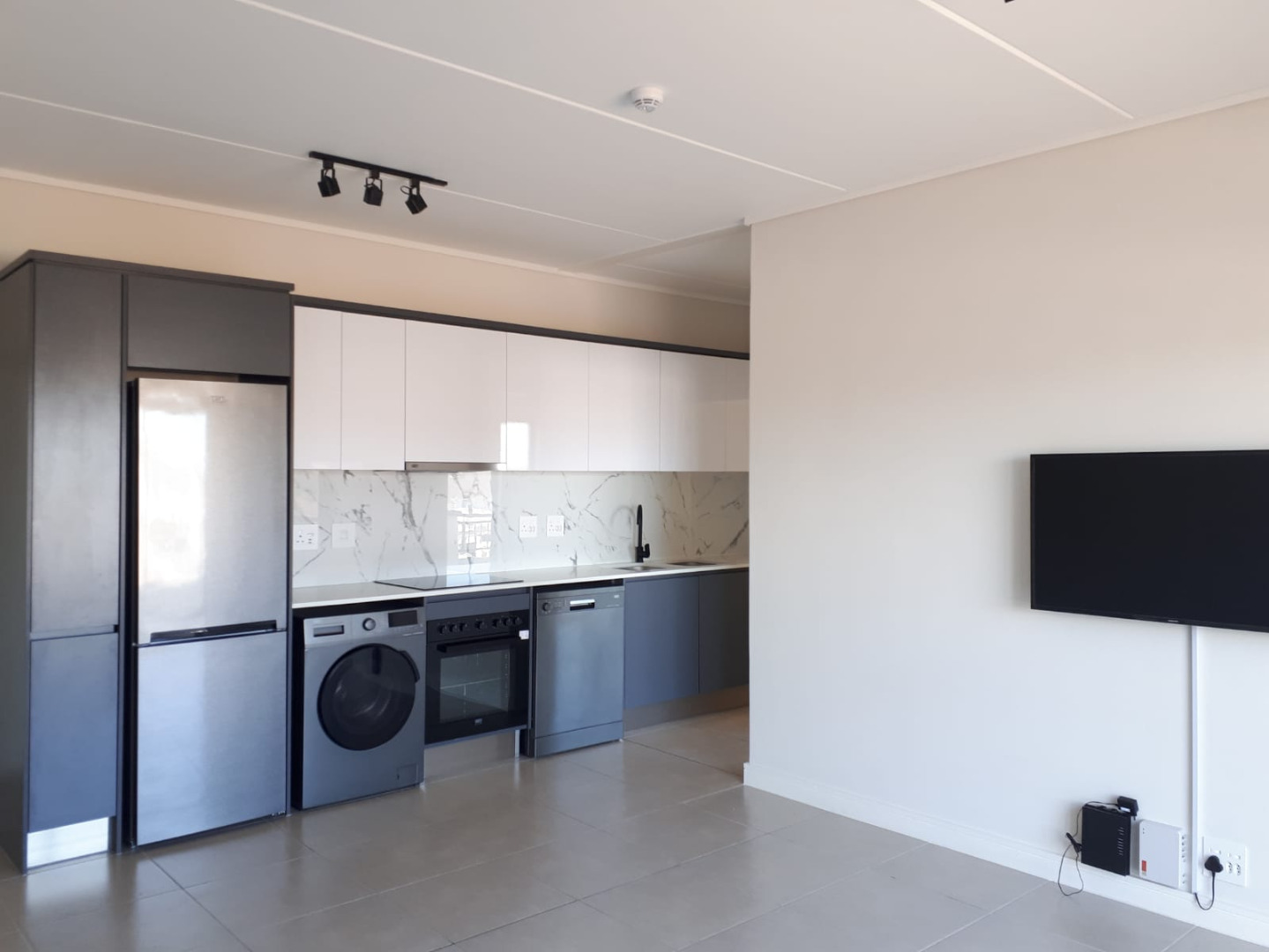 This apartment boasts an open-plan design that imparts a spacious and modern ambiance by seamlessly integrating the living and kitchen areas. The lounge features elegant block-out curtains and comes equipped with a television. The kitchen is fitted with appliances, including a stove, hob, oven, fridge, dishwasher, and a convenient washer/dryer combo.