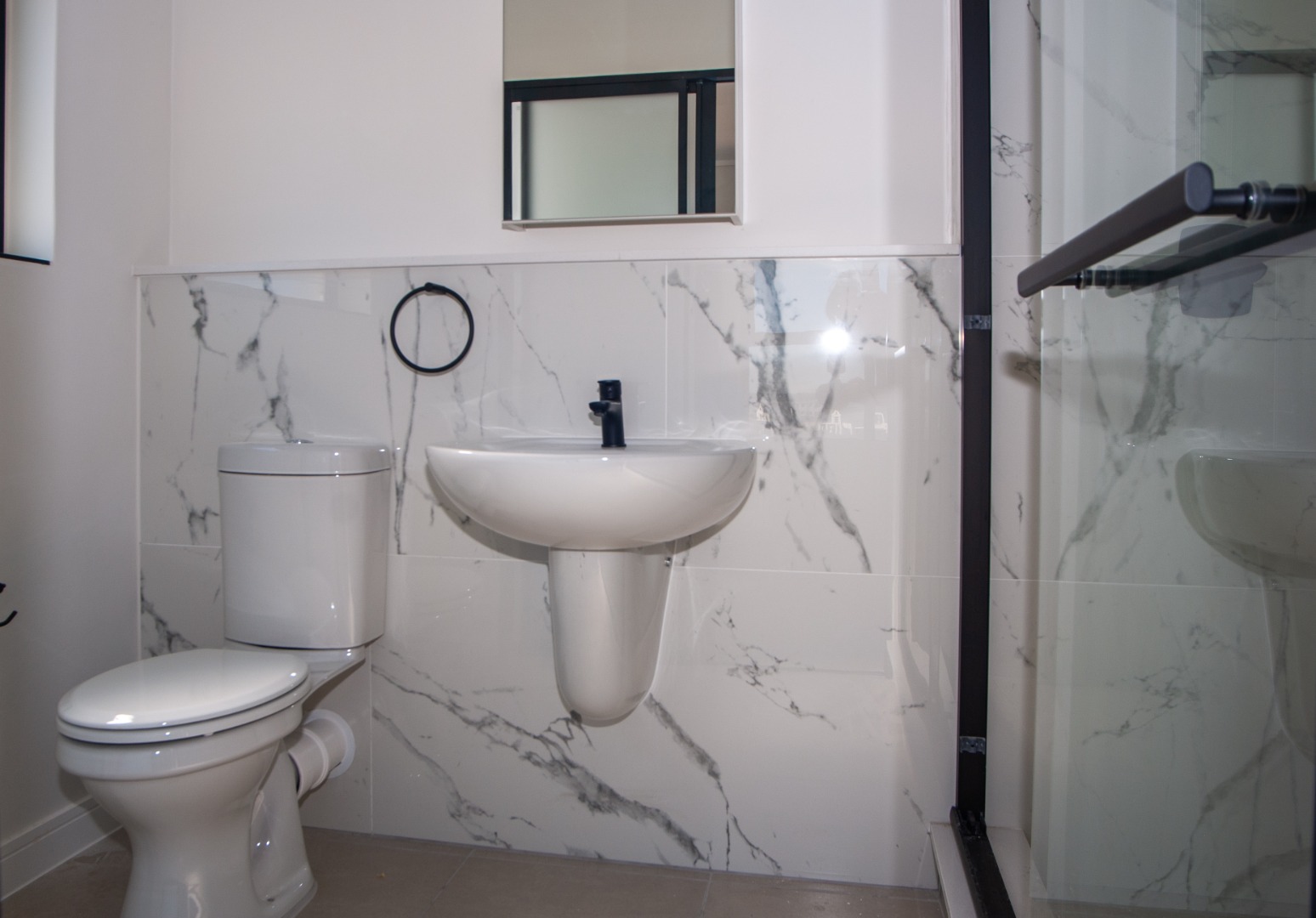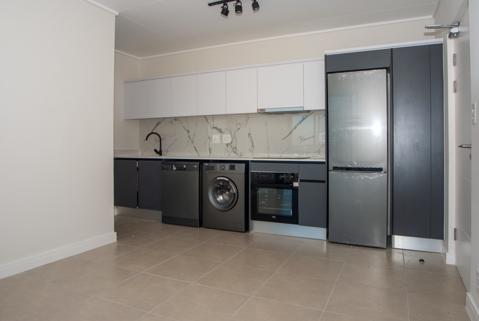 Flowing seamlessly from the kitchen is the open-plan dining/lounge area, which extends onto the covered west-facing balcony. The bedroom offers ample cupboard space and an en suite bathroom with a shower, basin and toilet.