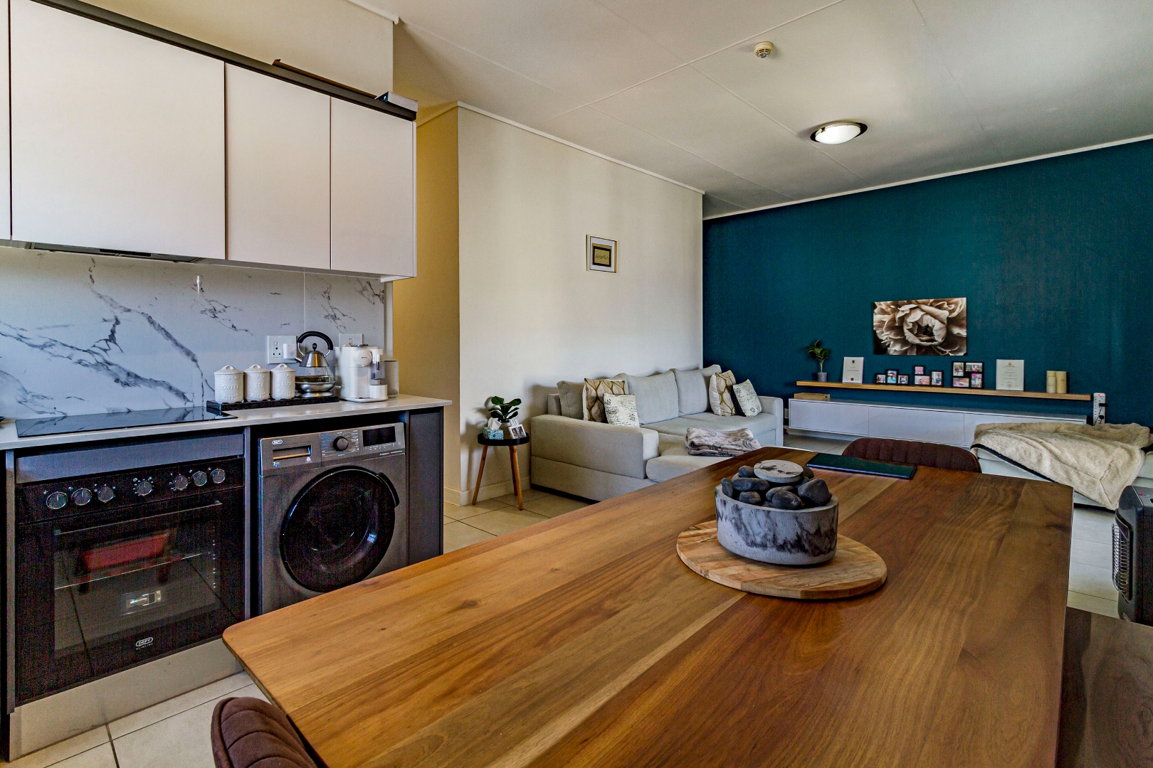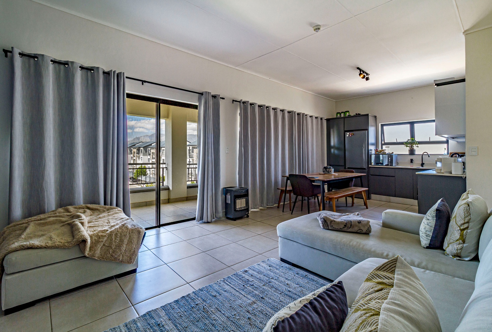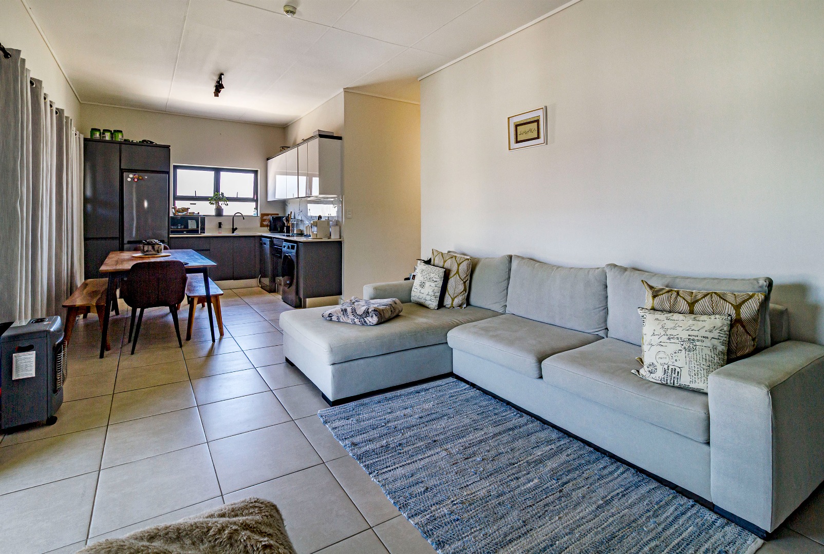 This penthouse apartment offers two well-sized bedrooms and two bathrooms, with a contemporary open-plan layout. The unit comes fully equipped with appliances, making your move-in effortless and hassle-free. Step outside onto the large balcony with a built-in braai, perfect for entertaining or relaxing while enjoying the elevated penthouse feel.