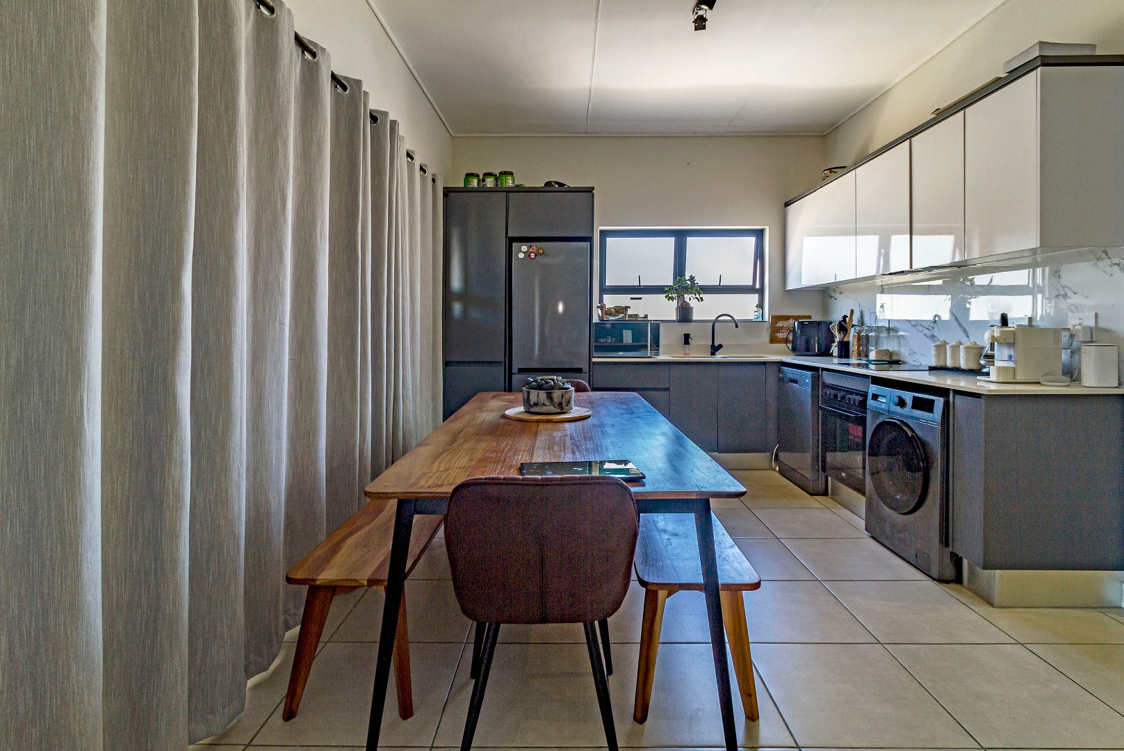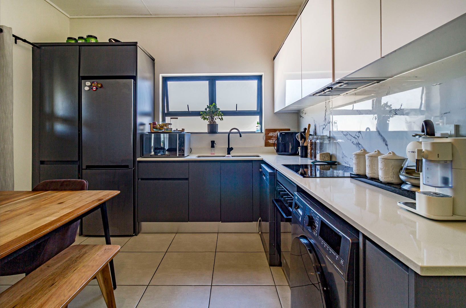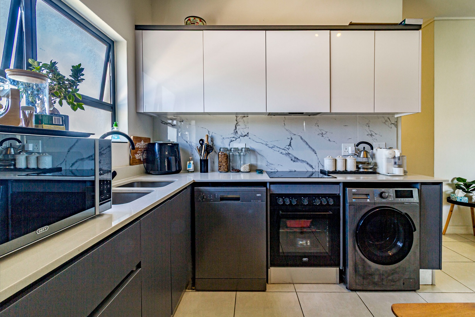 This penthouse apartment offers two well-sized bedrooms and two bathrooms, with a contemporary open-plan layout. The unit comes fully equipped with appliances, making your move-in effortless and hassle-free. Step outside onto the large balcony with a built-in braai, perfect for entertaining or relaxing while enjoying the elevated penthouse feel.