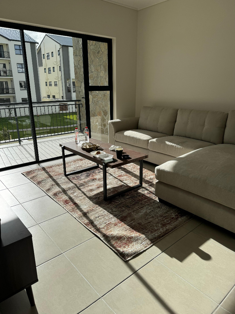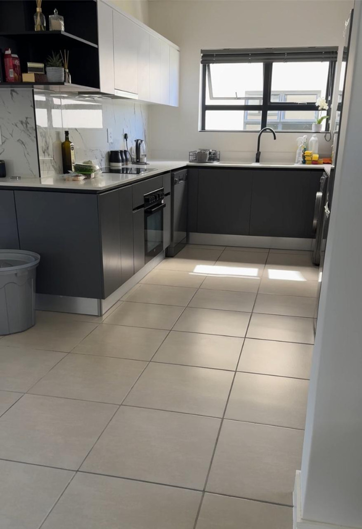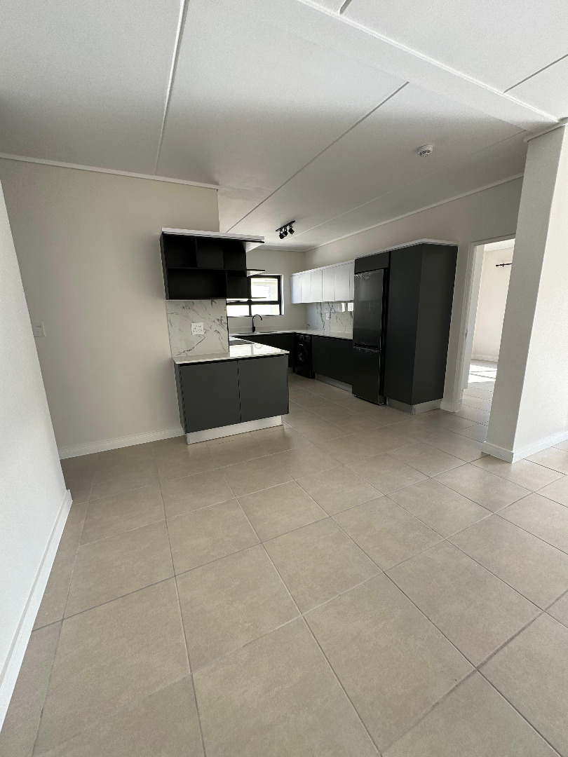 The open-plan layout seamlessly connects the kitchen—fitted with standard appliances—to the dining and lounge area, creating a welcoming space ideal for everyday living and entertaining.