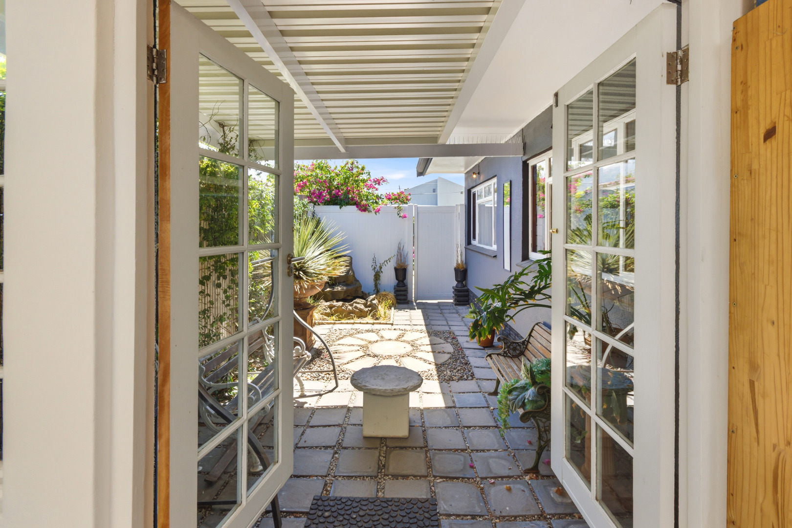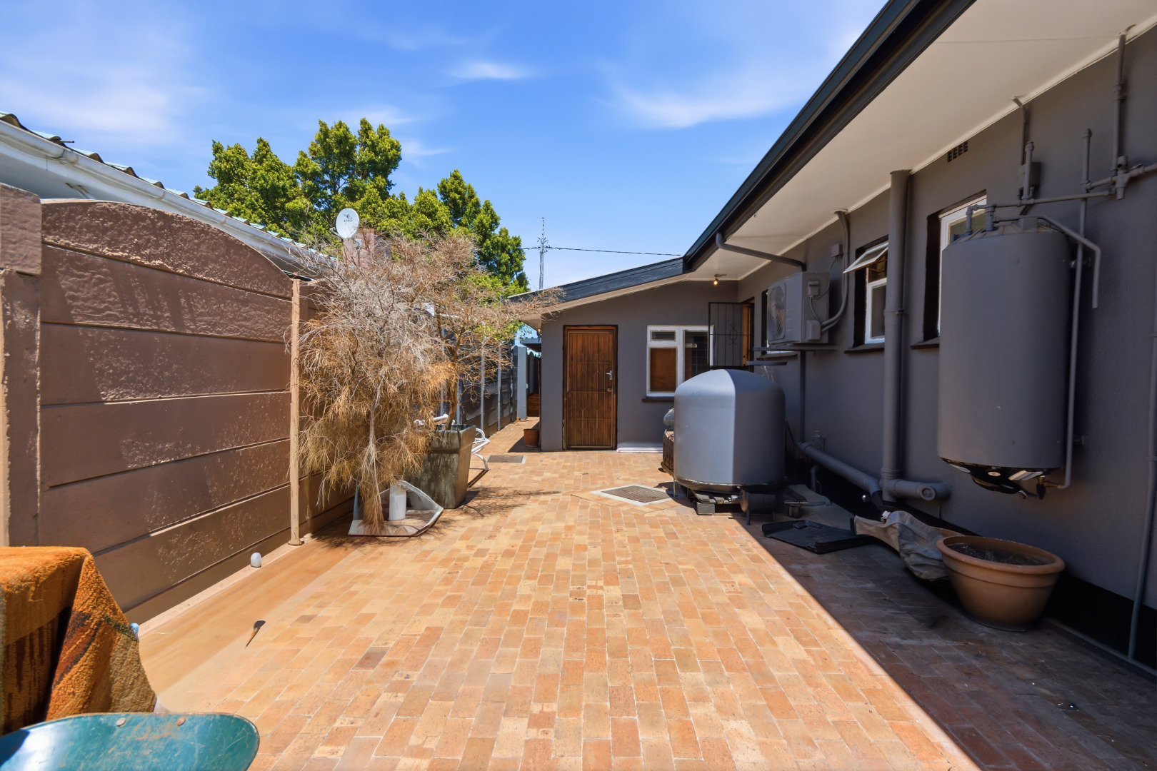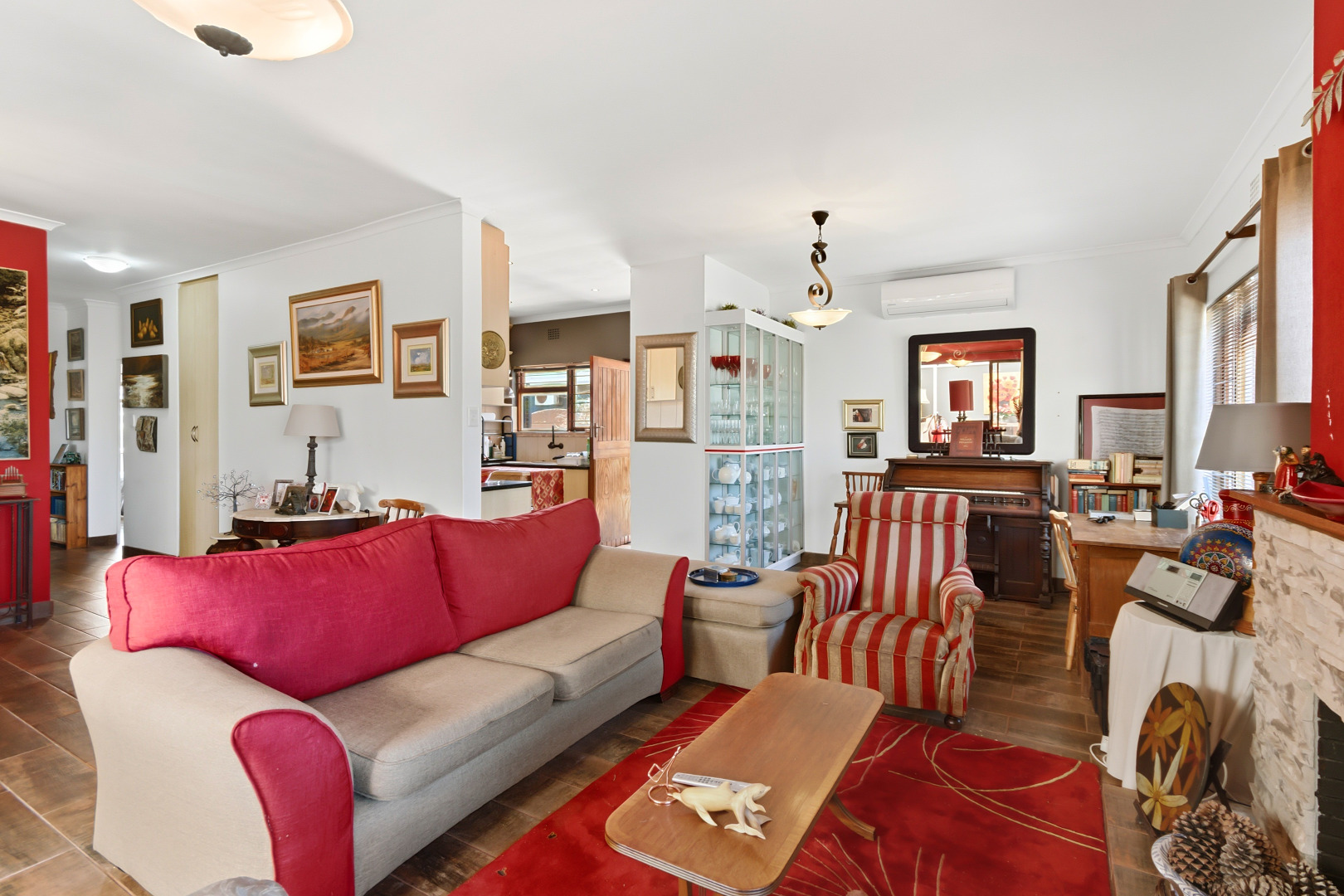 The home features three well-sized bedrooms with ample built-in cupboards, and a full bathroom with a separate toilet. The compact, functional kitchen provides sufficient storage for everyday needs. The open-plan living, dining, and sitting area includes a built-in stone fireplace, creating a warm and inviting atmosphere in winter. The living area opens via double doors into the sunroom, which flows seamlessly into the peaceful courtyard with its charming water feature. Beyond the private courtyard, the property offers a spacious backyard.