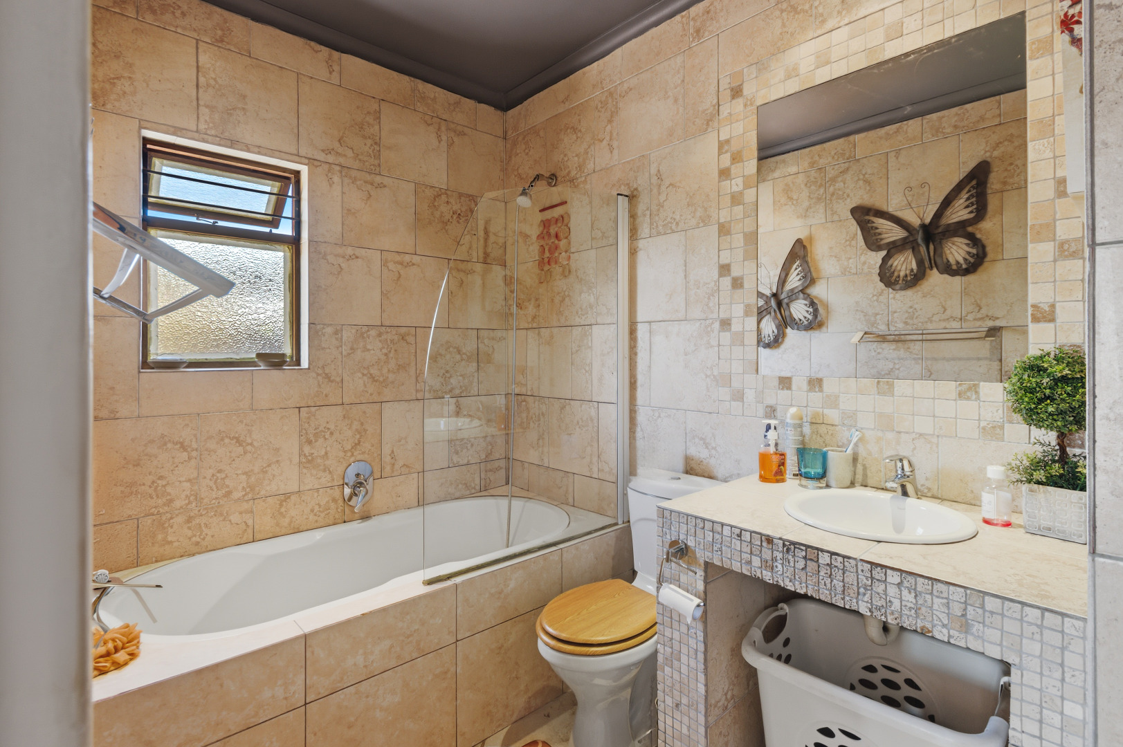 Additional features include a single garage, a double carport in front of the garage, and an electric motorized gate for secure access. Conveniently located within walking distance of Hottentots-Holland High school and the N2.