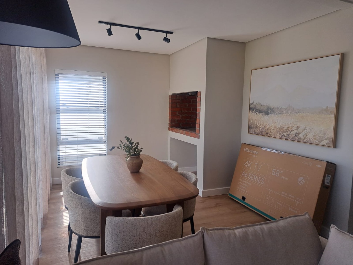 This home is almost 12months old and its first tenants' home will be ready for occupation as from the end of November, reason for vacating this home. This home offers a spacious open-plan living area which includes a lounge, dining area, braai area and kitchen. The kitchen allows space for a double door fridge/freezer, one plumbing point for you undercounter dishwasher or washing machine and a build-in stove with gas hob. There is direct access from the double garage into the home. The garage has a plumbing point for the washing machine. Guest toilet located on the ground floor.