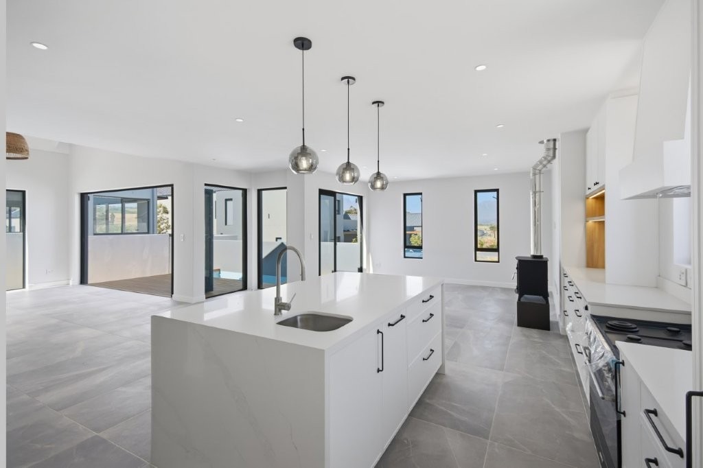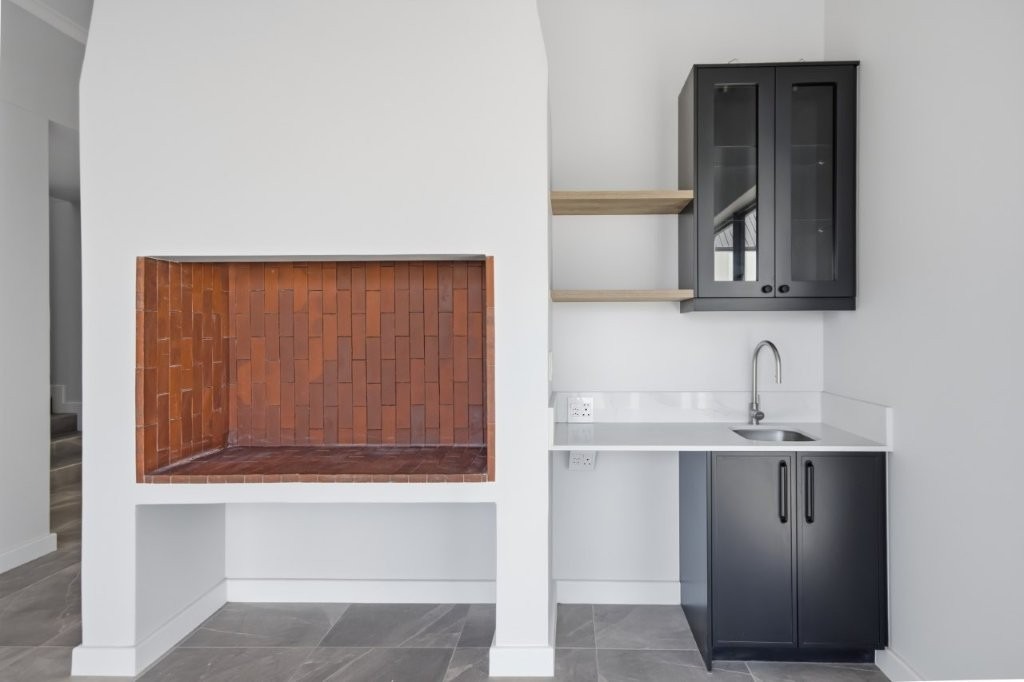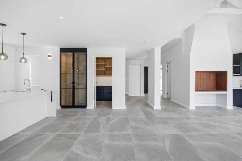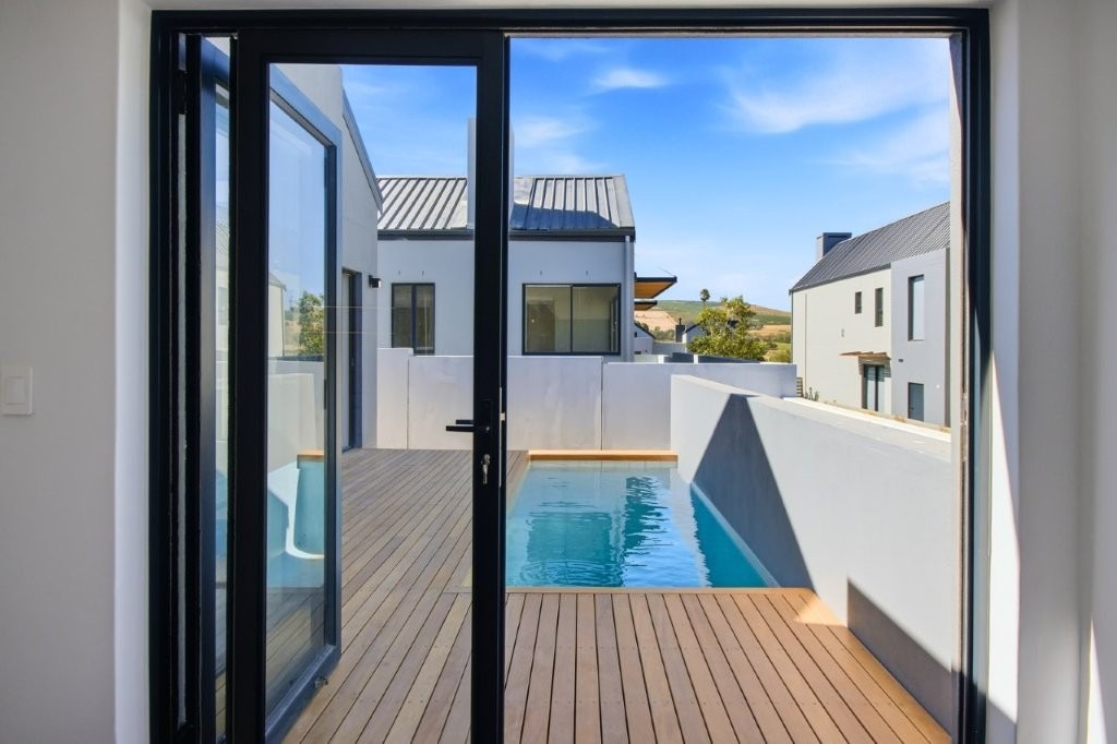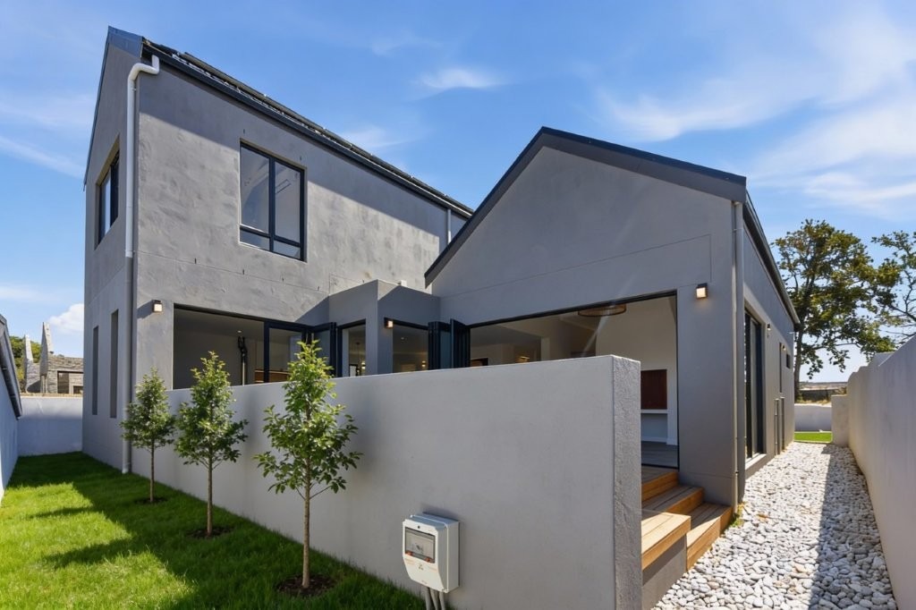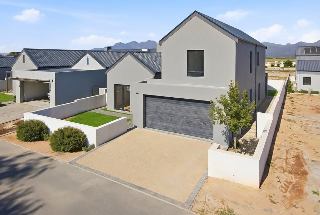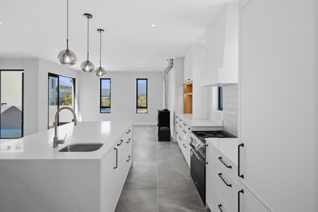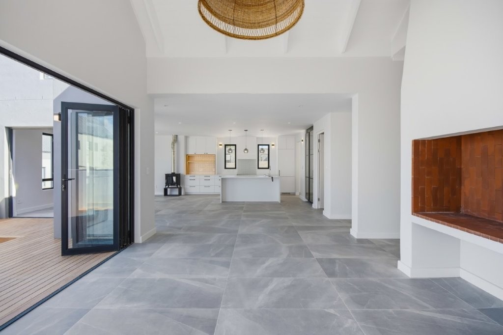 This newly built modern family home features 4 bedrooms with en suites, and spacious entertainment areas with beautiful views of the Stellenbosch Mountains.