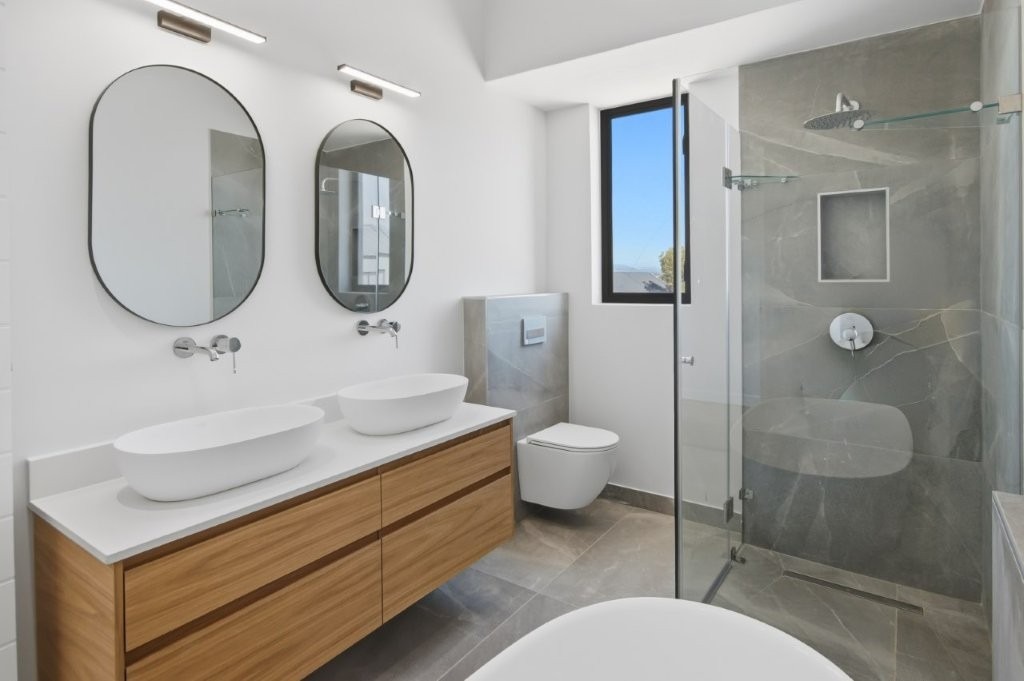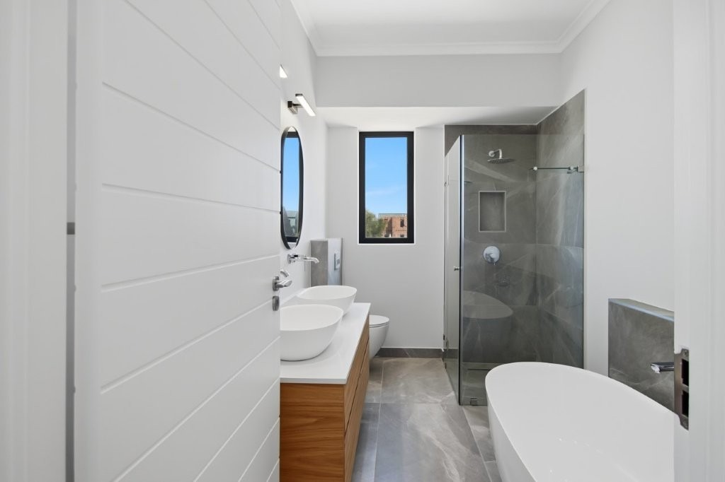 • Two additional spacious bedrooms, each with en-suite bathrooms (shower, basin, toilet)