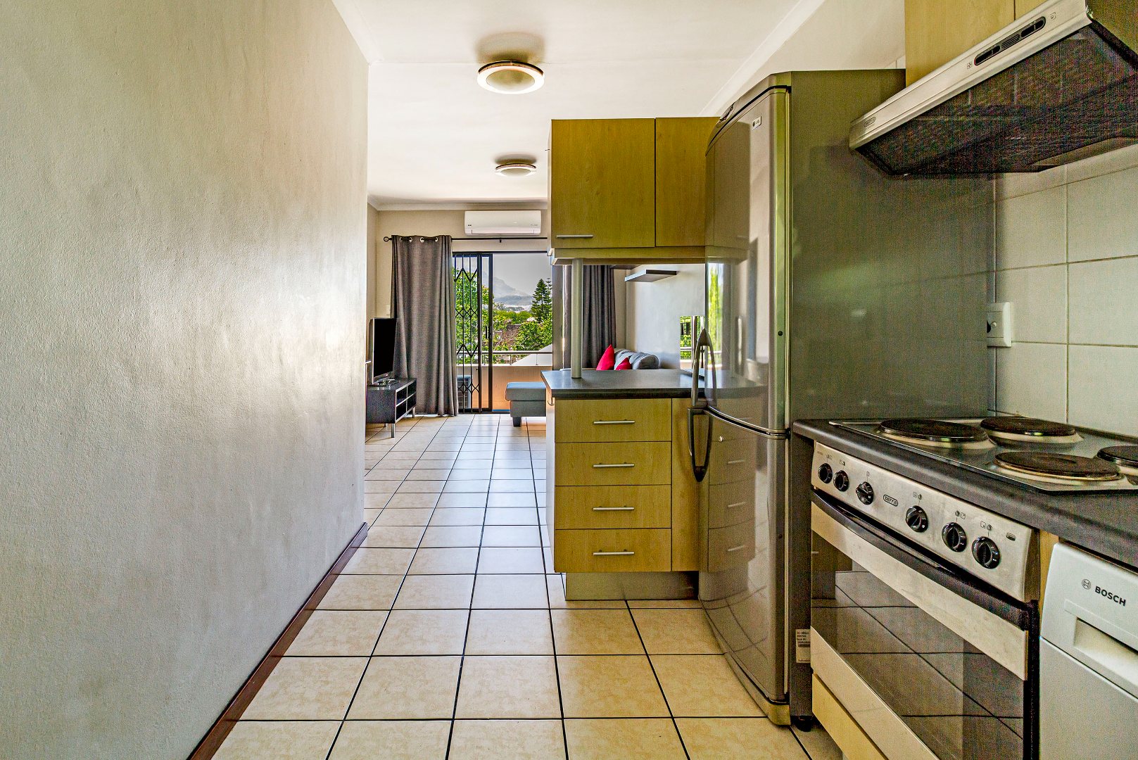 The rent includes water, internet, 1 secured parking bay and a cleaning service once every second week.