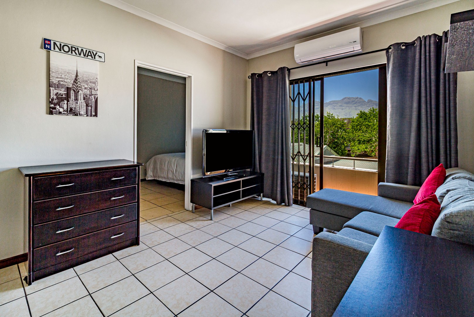 The rent includes water, internet, 1 secured parking bay and a cleaning service once every second week.