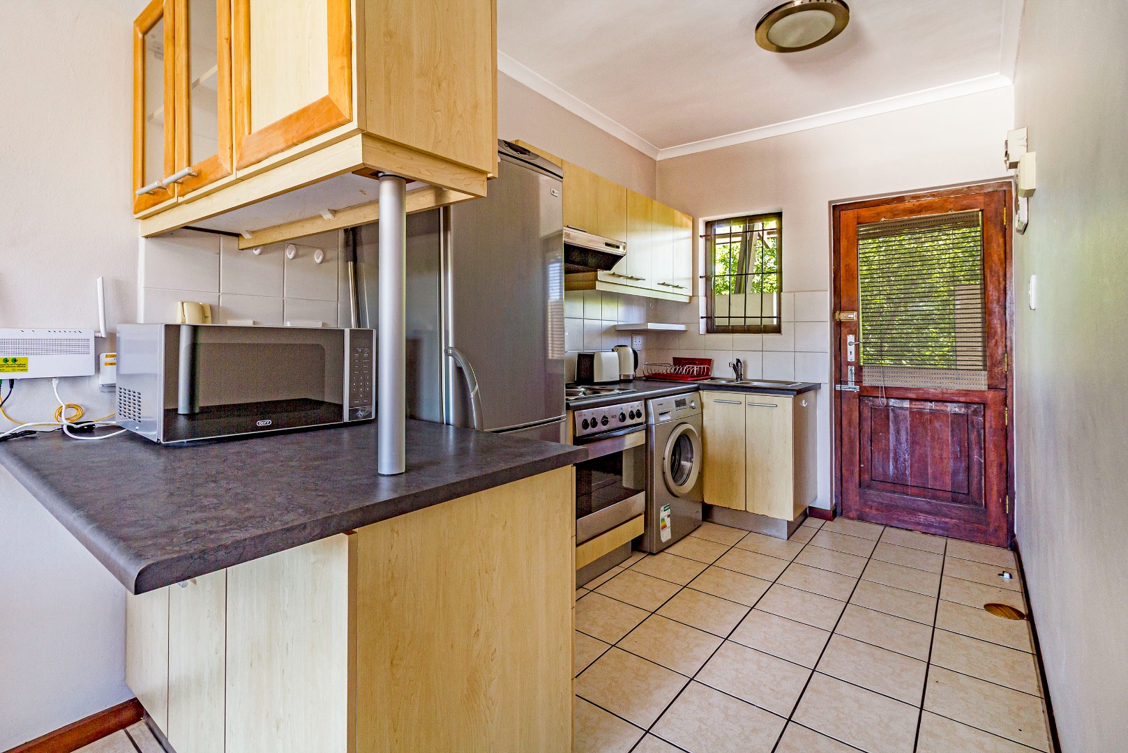 This fully furnished 2-bedroom apartment is located in the very popular and upcoming student hub, Dennesig Street. This apartment is close to the Stellenbosch Engineering Building and shops. This apartment is also perfect for sharing. The kitchen is well-equipped.